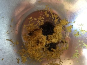 I melt a little bit of butter and add in some flour, for us, that happens to be wholemeal. I make a roux using approximately equal parts of each, but I only cook it to thicken it, I don’t want it to colour up, so I only cook it off on a gentle heat and soon add some milk a little at a time. The first few drops instantly thickens it to a stiff paste. I have to work at dissolving the first few drops of milk into the mucilage, as it is adsorbed, and the mixture loosens, I continue to add the milk slowly while stirring to avoid lumps. I only want a pale sauce for the gratin. I think that it looks most appropriate with the pale cauliflower.