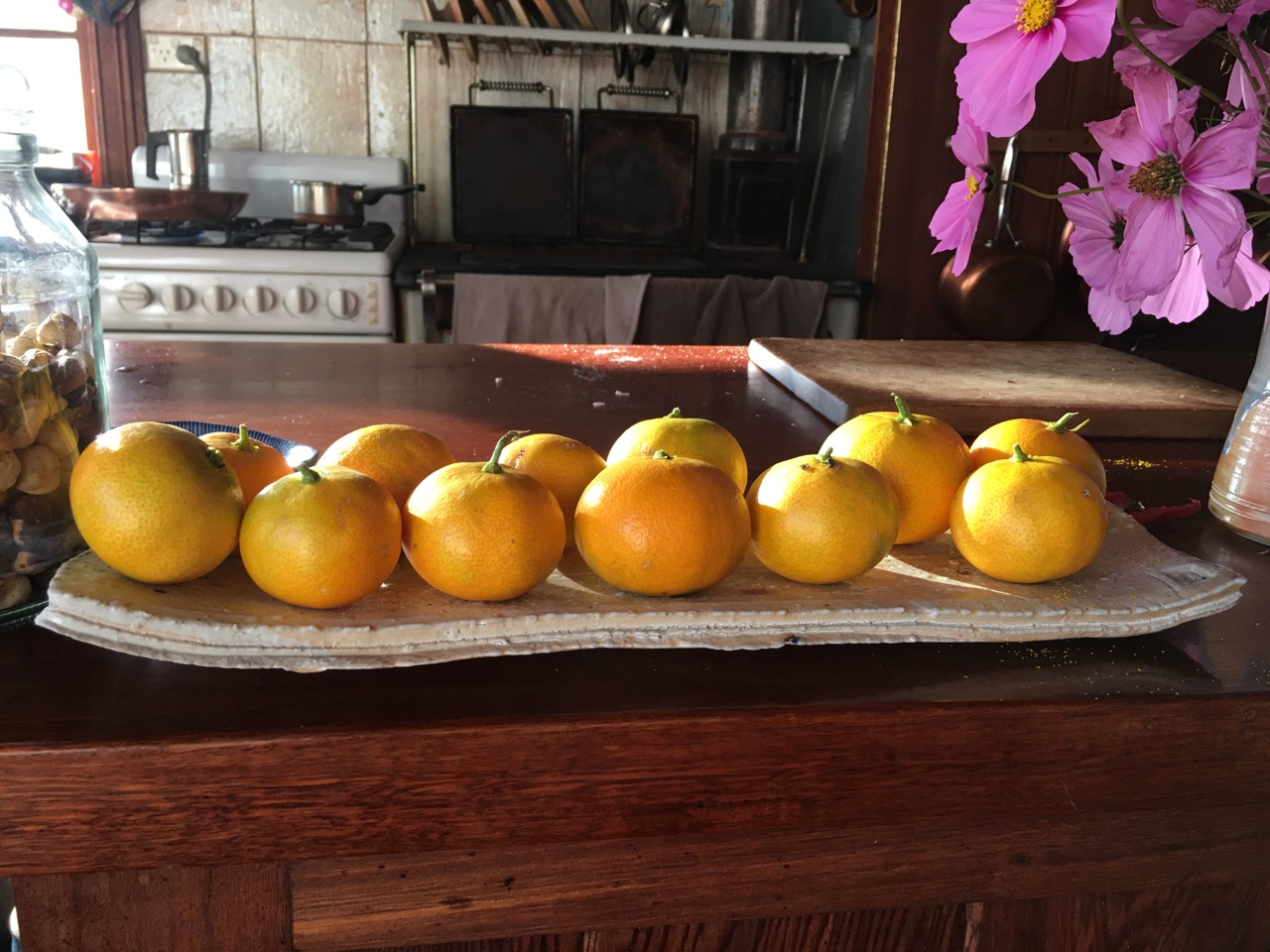 Janine has been using our current excess of passion fruit to make passion fruit and cream flummery. It’s quite easy to make, just passion fruit and cream whipped up together and then frozen. Janine takes it out of the freezer every so often and re-whips it to keep it light and fluffy while it freezes.