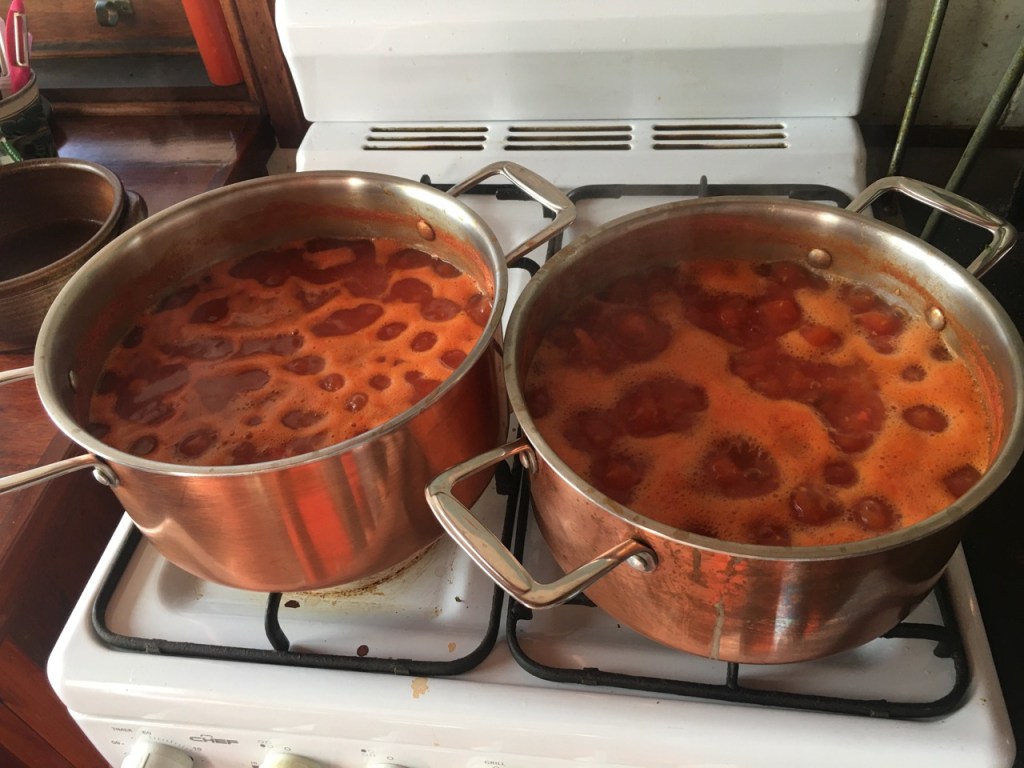 This year I’m giving one of Mrs Beaton’s recipes a try. There are a few in the book. This is No.2 as recommended by Bill. I doubled the quantities, to make it worthwhile spending the time on it. However. I couldn’t bring myself to use 3 lbs (2.7kgs) of sugar. So I reduced it to 1 kg and added 25 grams of pectin to make up for the reduced sugar. After converting it to metic and doubling all the quantities, it still tastes great!