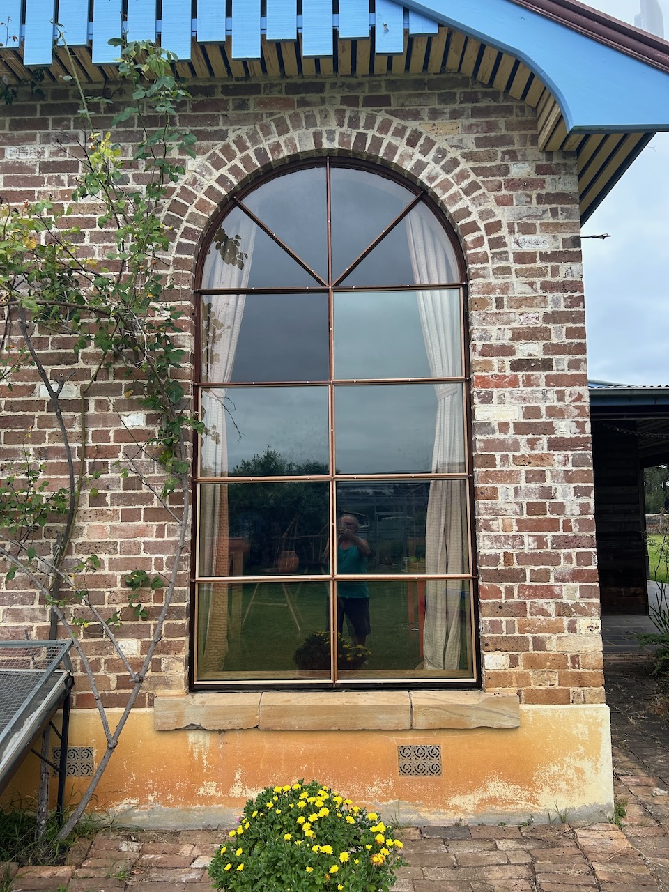 Andy and I marked out, hand cut and fitted the curves exactly to match the variations in the mixed 2nd hand gal sheets. A slow, but rewarding job. We couldn’t use a template, as almost every sheet is different across the wall. Until I collected all this mixed corrugated iron roofing fro mall around Sydney and the Highlands. I didn’t realise how many different profiles of corrugated iron there were. I just thought that it was all the same. But every company has their own individual variation of the profile.