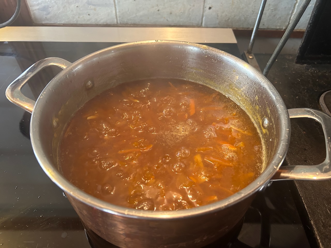 It’s a good recipe and in this slightly altered form, with much less sugar. I still find it very sweet. I’m glad that I didn’t bother trying it in the original. I wouldn’t have enjoyed eating it at all. Boiling the whole fruit for 2 hrs and letting it sit overnight to cool gives it a very old fashioned sour flavour from the peel that we don’t get by just boiling the peel and juice for a short time.