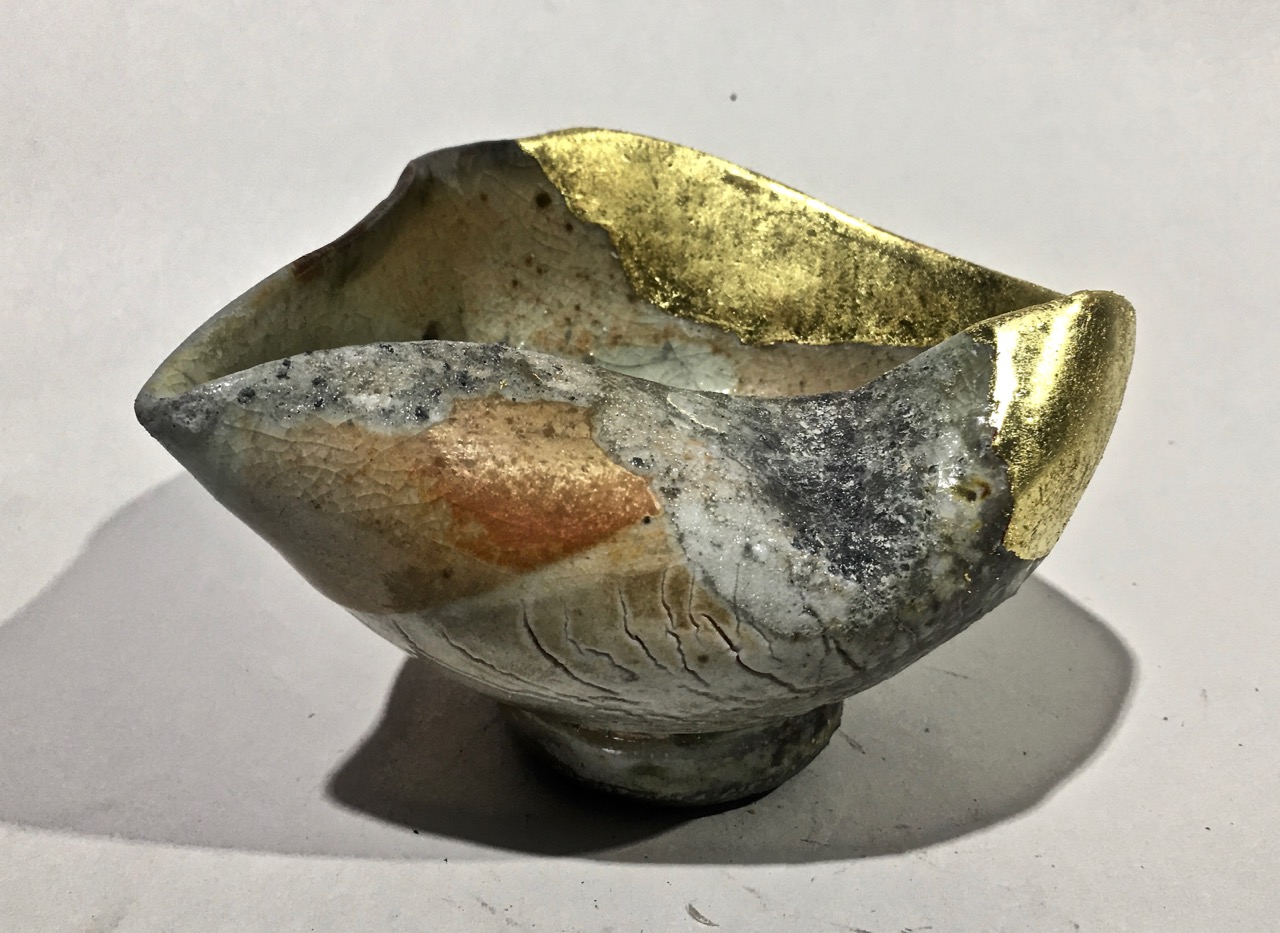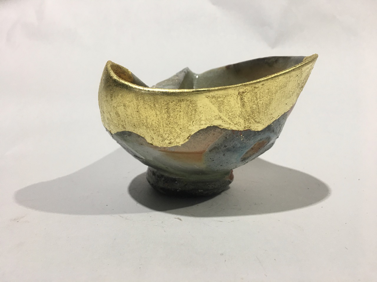 As for the concept of kintsugi that I mentioned above. I have been slowly working my way through a number of special pots that survived the fire. They are all broken, but still rather lovely in their own special broken and shattered way. I have re-built all the broken and missing sections of the bowls using my own home-made epoxy-based filler which I hand-build in small sections, layer upon layer, grinding back and sanding each layer, then adding on another little section, slowly building the missing section back up to where it once was.