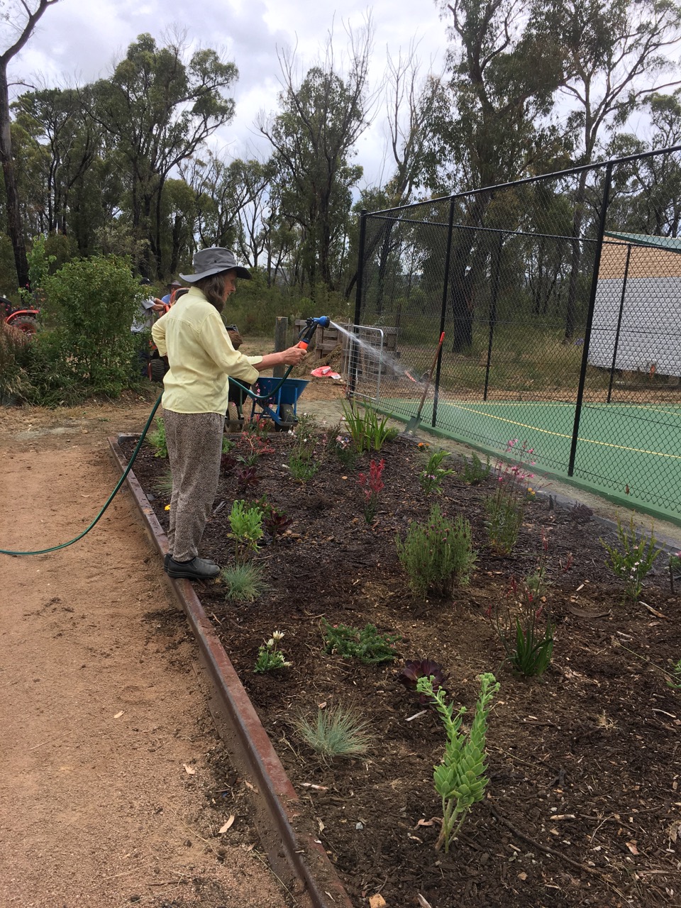 Janine watering in the new plantings. It’s a lovely feeling to be part of a communal group activity.