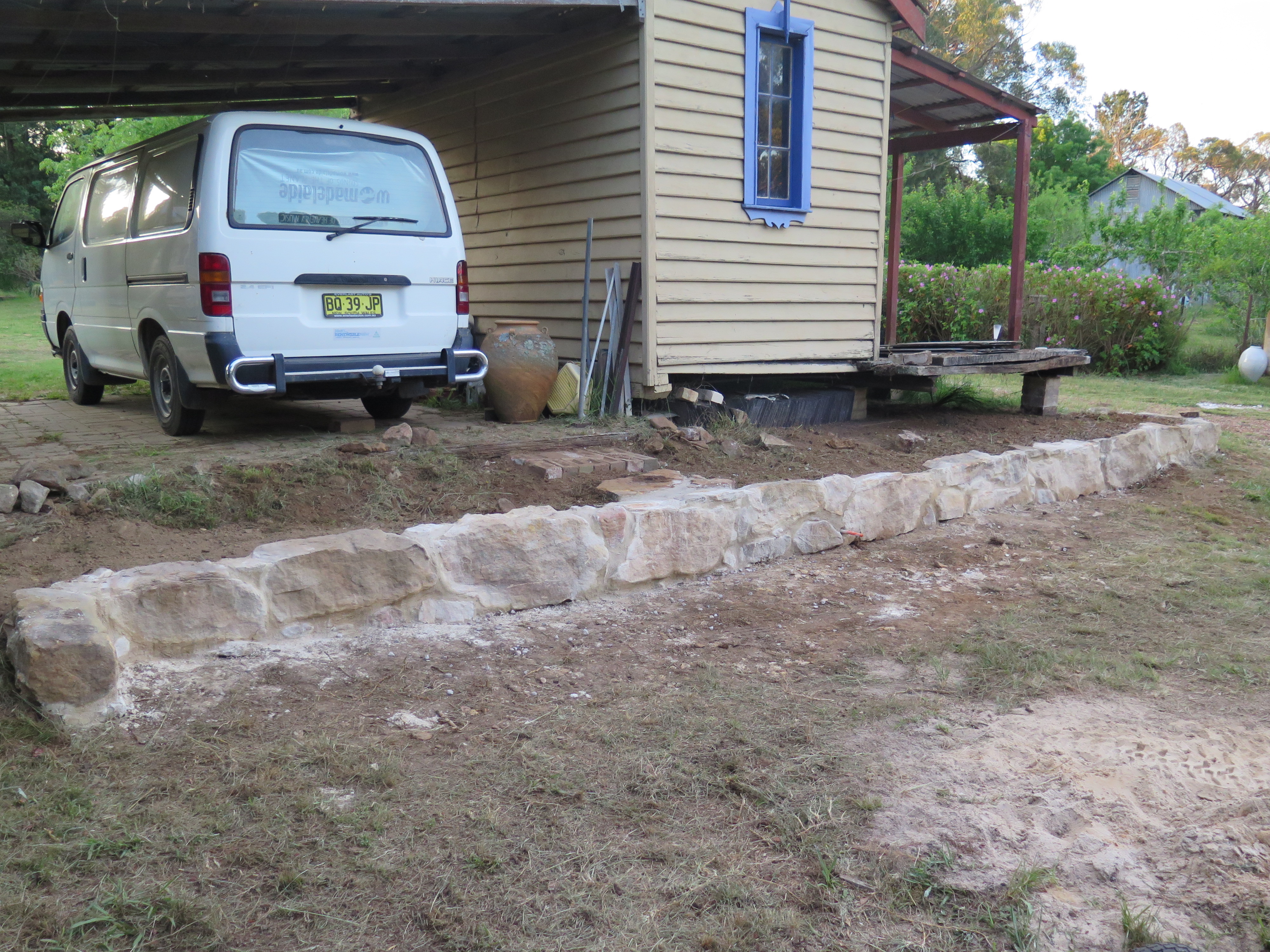 I take a day ‘off’ and go down to the timber yard and buy new ‘treated’ sleepers. I slowly remove each of the old sleepers a few at a time, and replace them with the new ones. It all goes pretty much to plane and is finished by the end of the day. However, I still have to put up the new guttering.