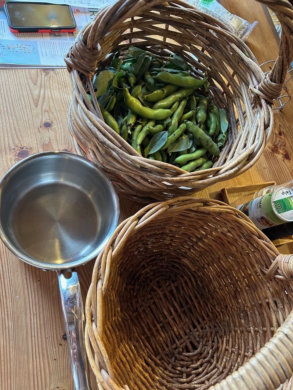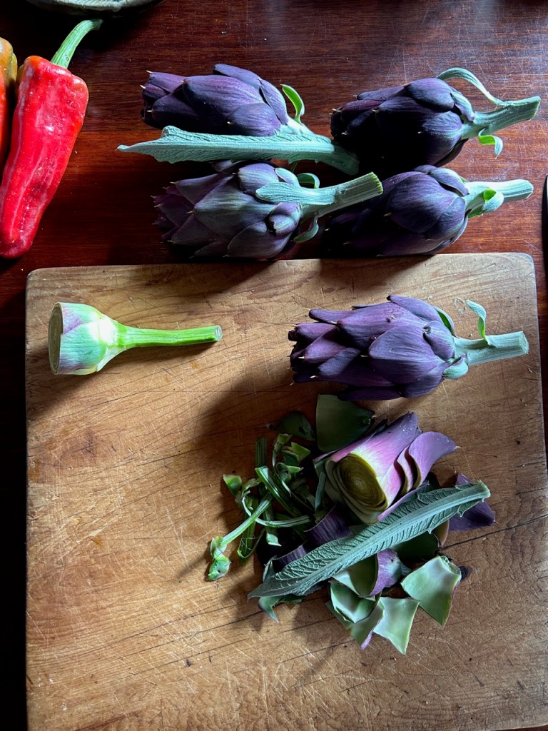 When there comes a break in the rain, I get out and pick vegetables for dinner. This time is leaks, broccoli, Brussel sprouts and carrots. I’m planning baked veggies with a mustard infused béchamel source for dinner. I make a quick and warming lunch of pasta. I tried to steal the spaghetti from the supermarket, but the female security guard saw me and I couldn’t get pasta!