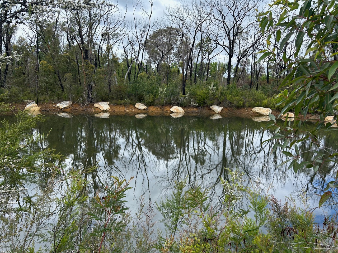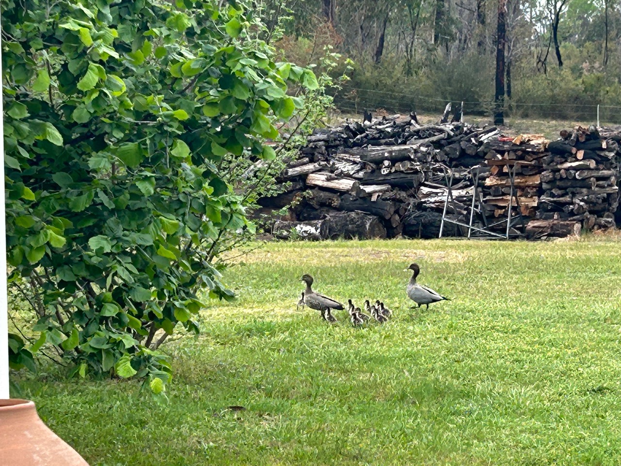 It’s been raining again quite heavily. We now have 4 different little streams flowing across our land, where the dams overflow, and the front lawn is under 25mm of water, like a slow moving shallow lake gently flowing across our kitchen vista.