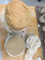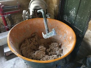 I put the stones through the jaw crusher and then the disc mill, then finally through the ball mill. If I had more to deal with I would put the slurry out on the drying bed. But as I only have a couple of kilos of material, I put in into the plaster drying tubs to stiffen up.
