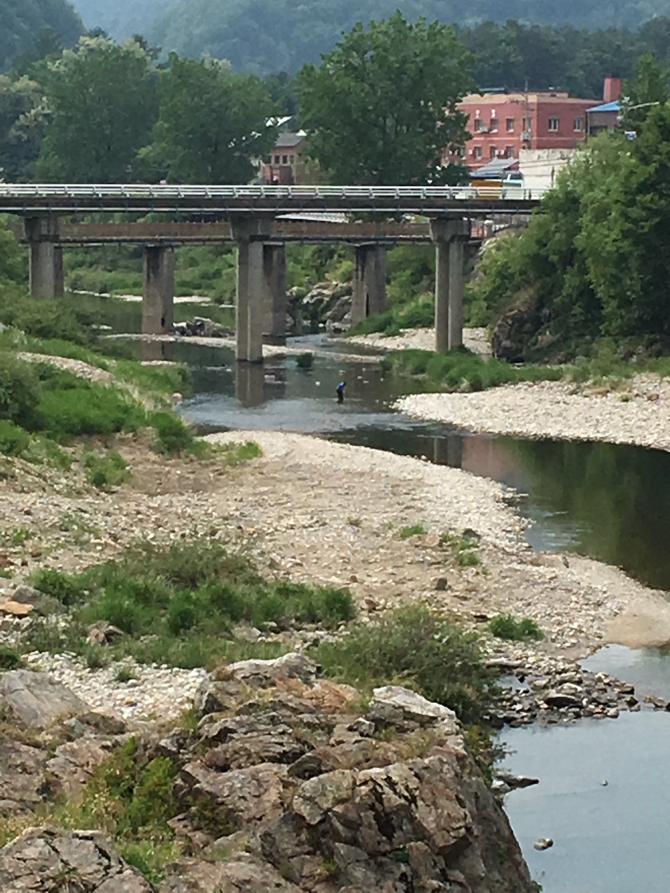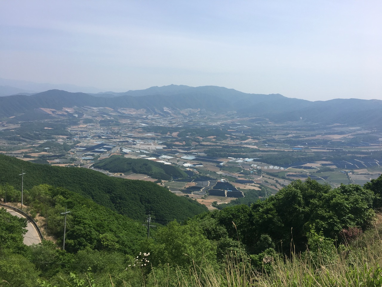 I the afternoon Mr Jung takes me for a ride, up to the South/North Korean border. There is a lookout post where you can see over the no-mans-land. The road takes us to the east of here through a volcanic crater that is called the ‘Punch bowl’. It is intensively farmed due to the rich volcanic soil within the extinct volcanic crater. It reminds me of the Rutherglen region of Northern Victoria. Great wines are grown in that rich soil and concentrated micro climate.