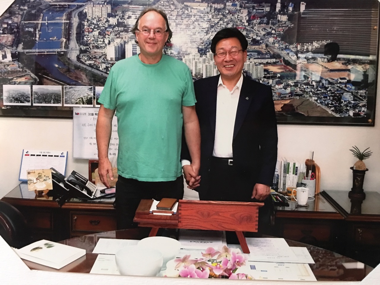 We meet in the Premiers Office. Myself, Mr Jung, Myeongki my translator and several local government minders. We are ushered into the Premiers private office, with its loverly, large round table and very plush leather lounge chairs. The official photographers are there and capture the moment for the press release. Everyone benefits from this meeting.