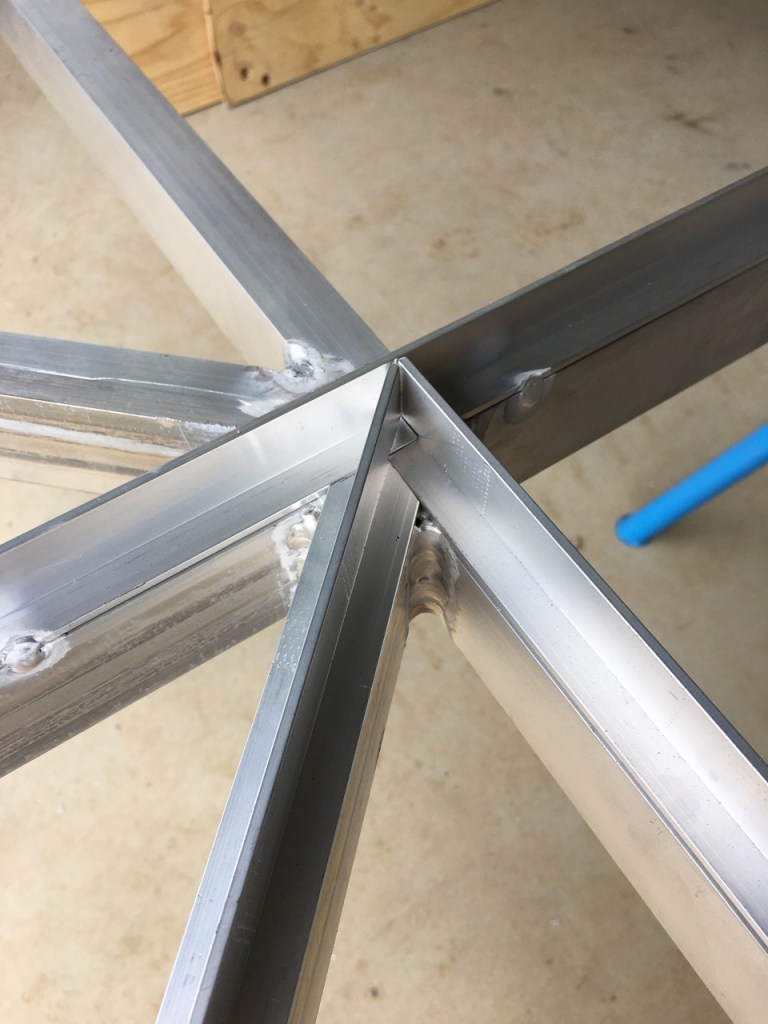 I chose to use the sheets in the necessary lengths required in each position. This resulted in a mix of rather unattractive colours that didn’t sit well together. We decided that we would have to paint it all one colour to get some aesthetic cohesion. Even if the profile of the different sheets, manufactured in different decades, by different companies, didn’t fully match, resulting in some rather big gaps in the overlaps. Well, beggars can’t be choosers!