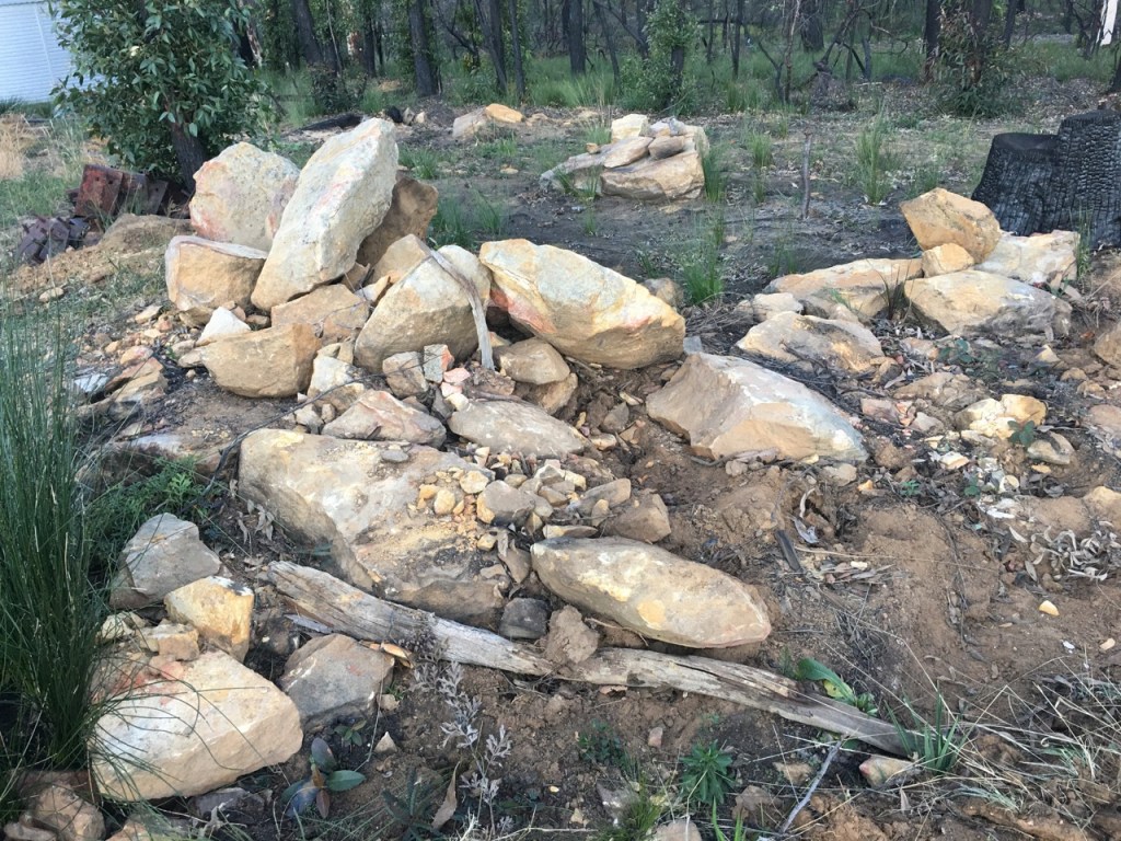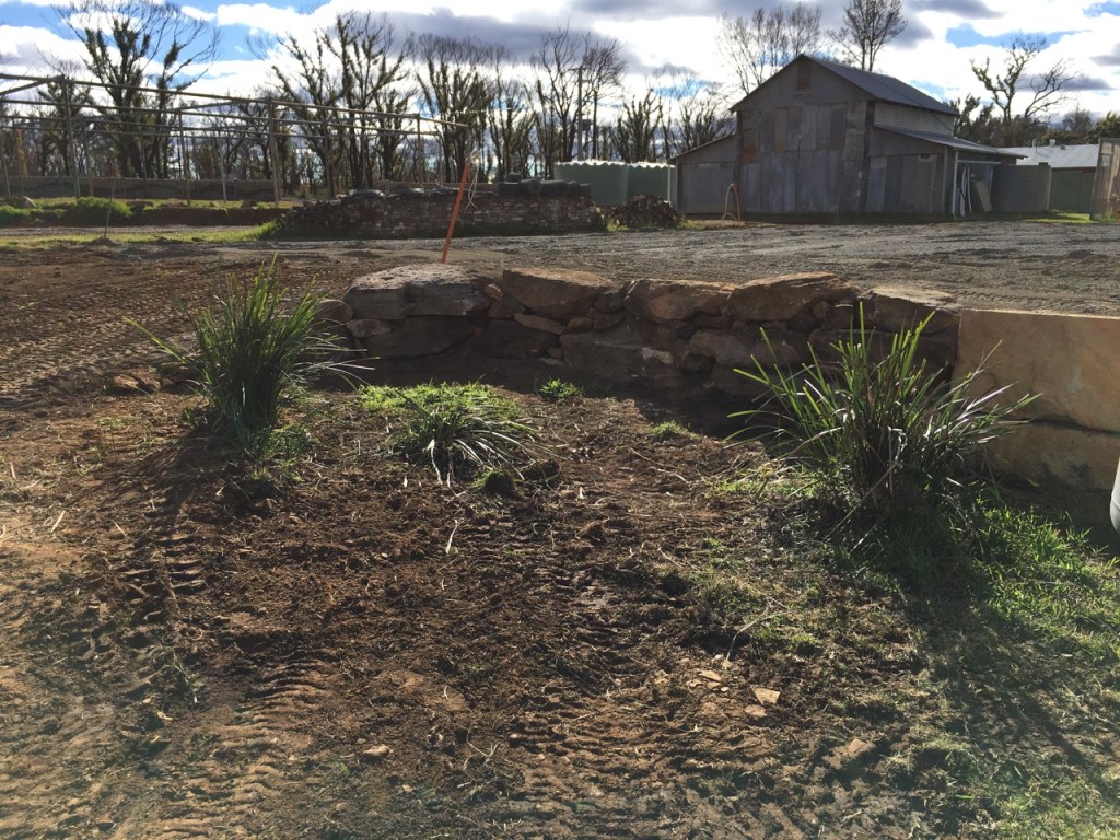 We managed to move and place about 20 large sandstone floaters into position and back fill the site with soil and batter the edges into ramps, that will allow easy access by our zimmer frames and/or wheel chairs into the future.
