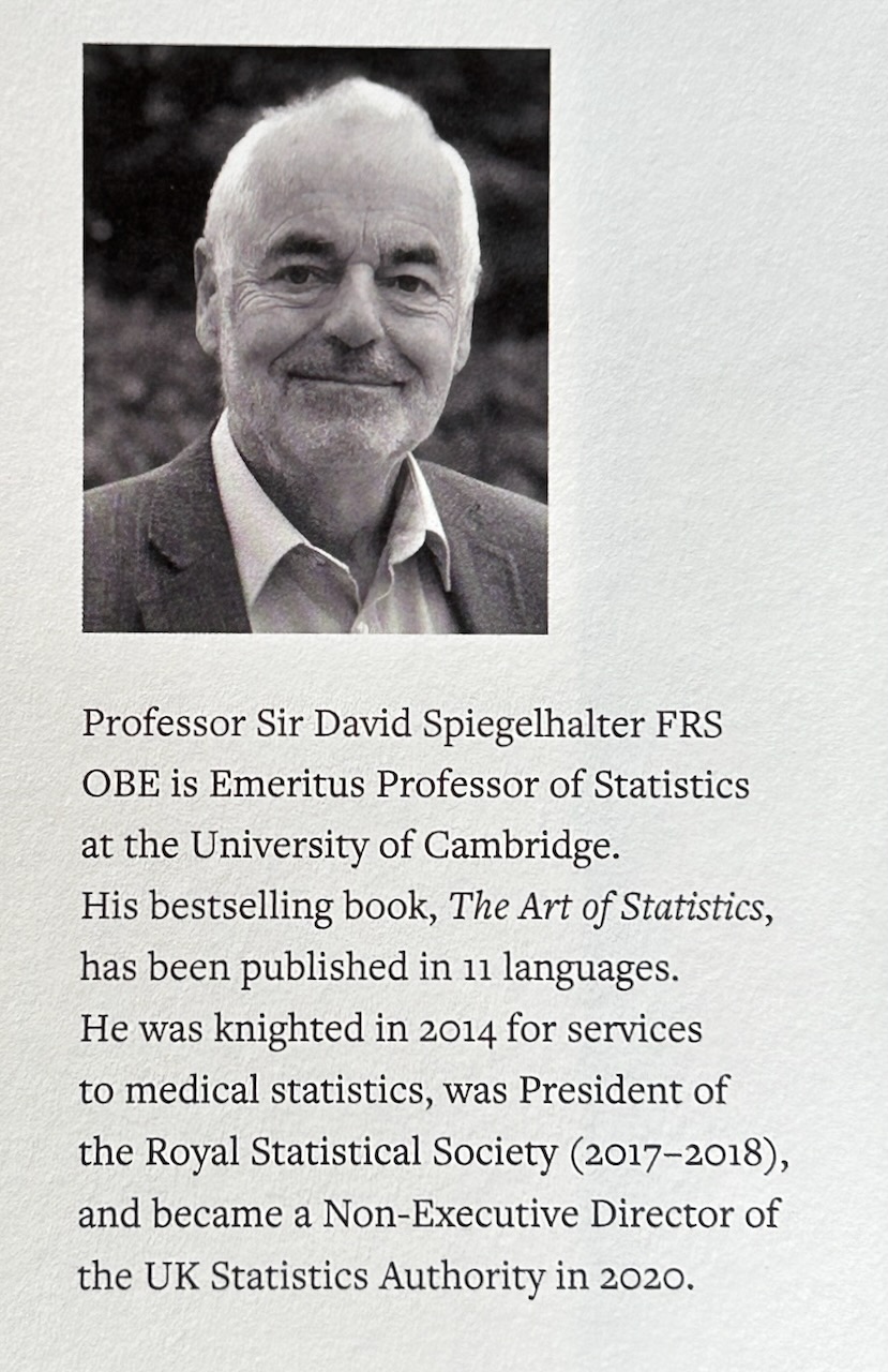 ‘The Art of Uncertainty’ is written by Sir David Spieglehalter FRS OBE, Emeritus Professor of Statistics at Cambridge University. Someone to take seriously indeed. The sub-title of the book is ‘How to Navigate Chance, Ignorance Risk and Luck’. I was lucky enough to navigate across it by chance and took the risk to disabuse my self of some of my ignorance.