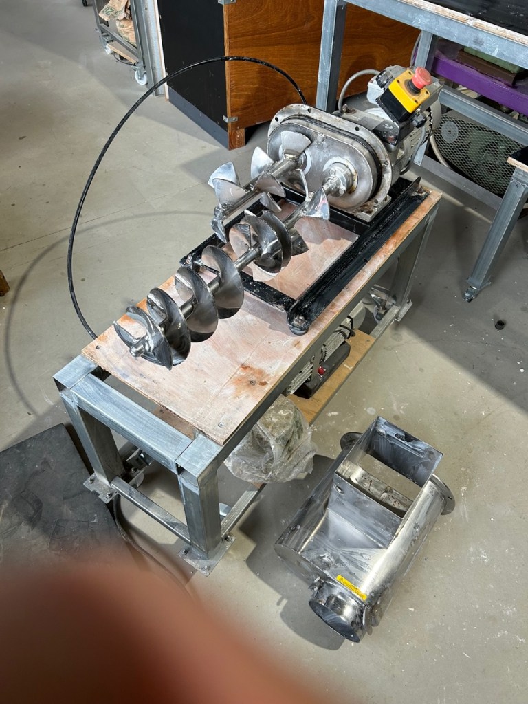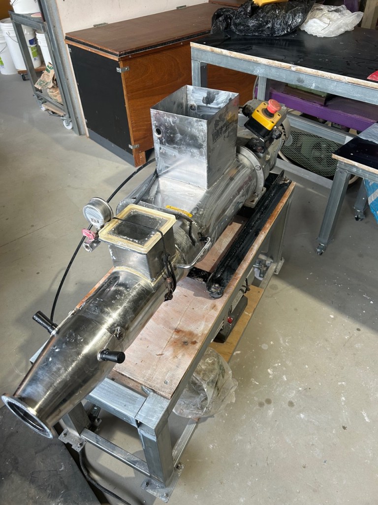 I bought this pug mill 2nd hand after the fire. It came from a deceased estate. I was dying to own one of these stainless steel twin auger pug mills, and was lucky enough to find someone was dying, to sell it to me.