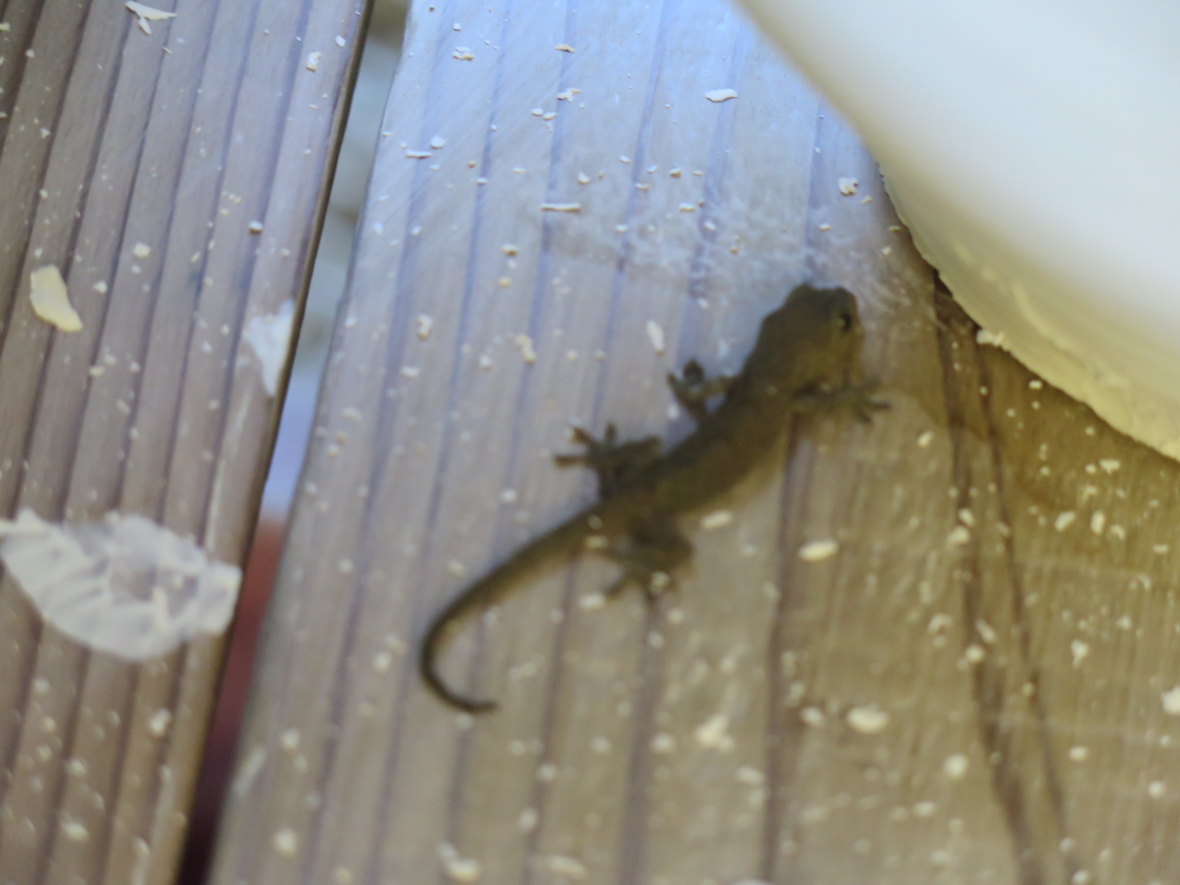 A gecko comes to visit me while I’m turning.