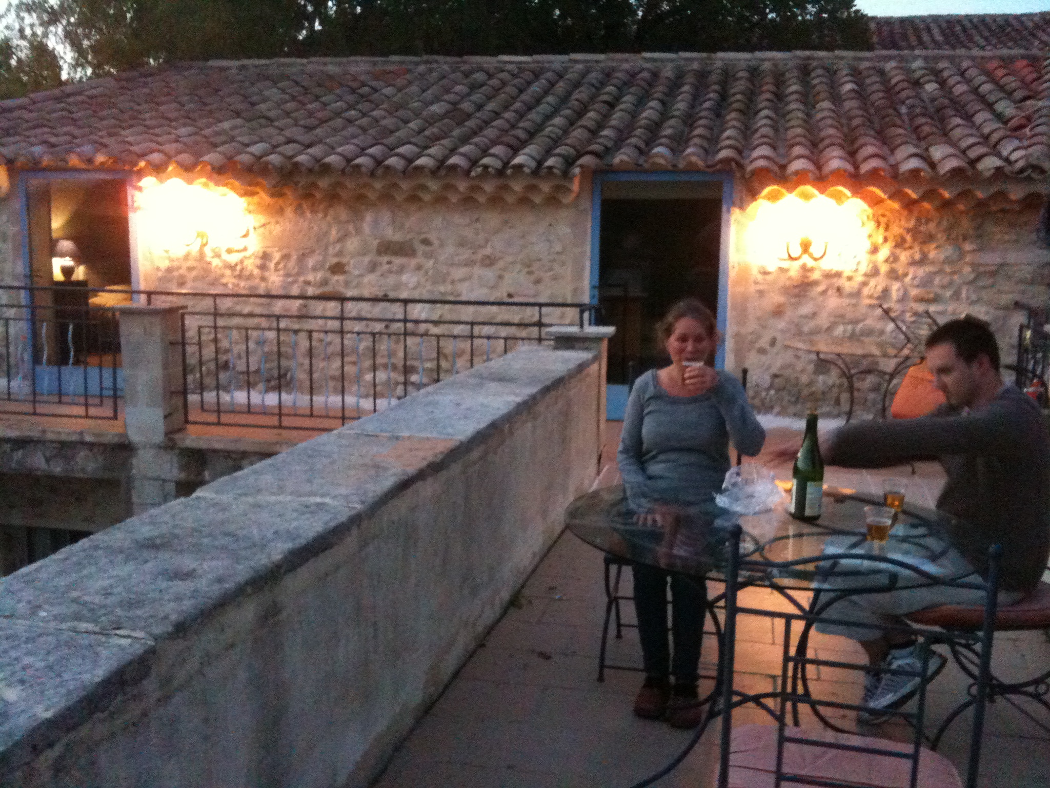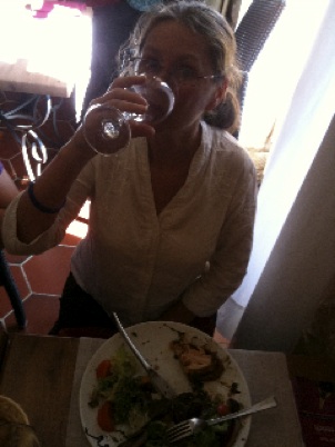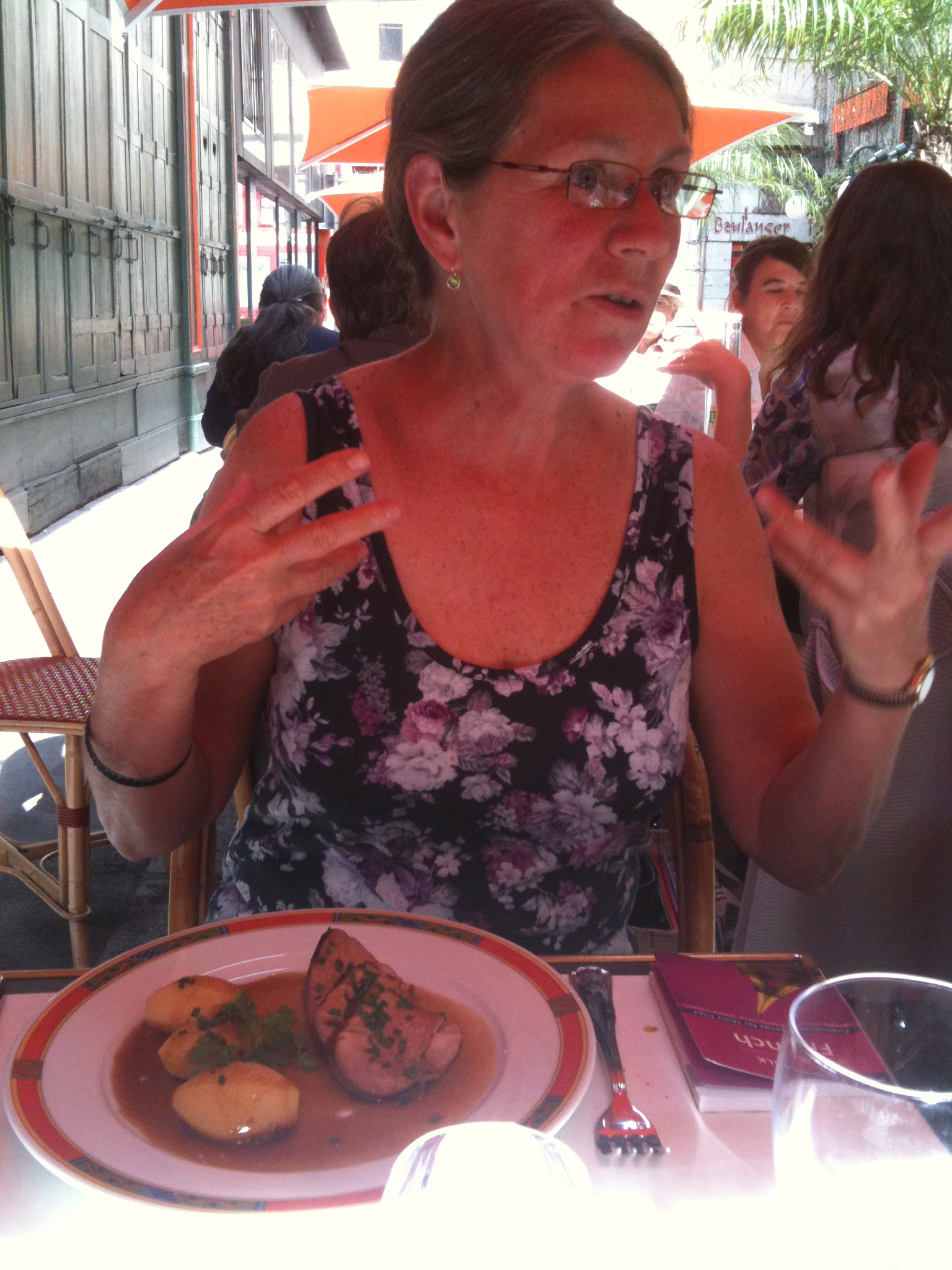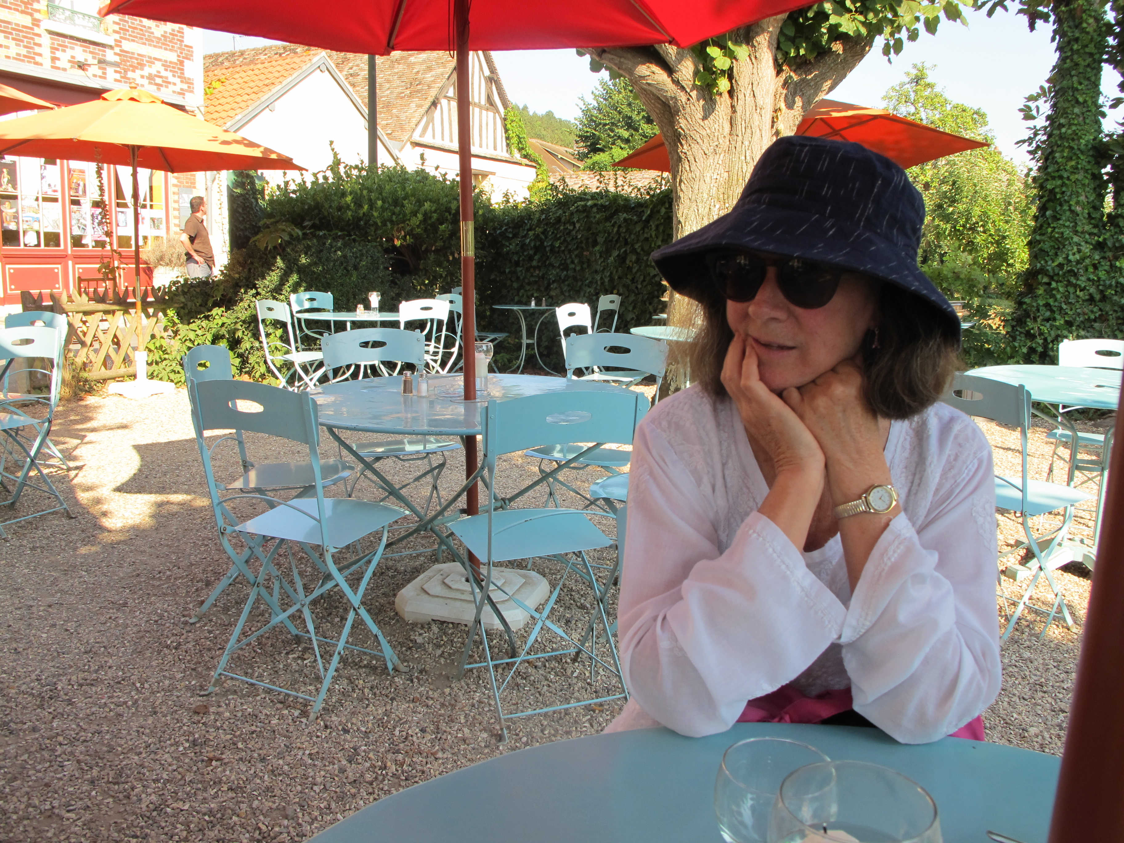 The cafe only does lunches, so in the afternoon they only do drinks and coffee and the wait staff handle this. Sylvie and David, (pronounced Daveeed) are constantly popping in and out of the kitchen with more little treats and another bottle of wine. My favorite was the goose pate foie gras with onion jam, but the bottle of aged 1987 Bordeaux red was pretty good too. Because we are friends of friends, they won’t hear of us paying. But because I am the only driver. I limit myself to just one glass of wine all day, evening and night and only then because it was such a special bottle that was on offer. I stick with water, I just can’t afford to loose concentration for one second while driving here. It can be really tricky in the little roads with so many cars going so fast.