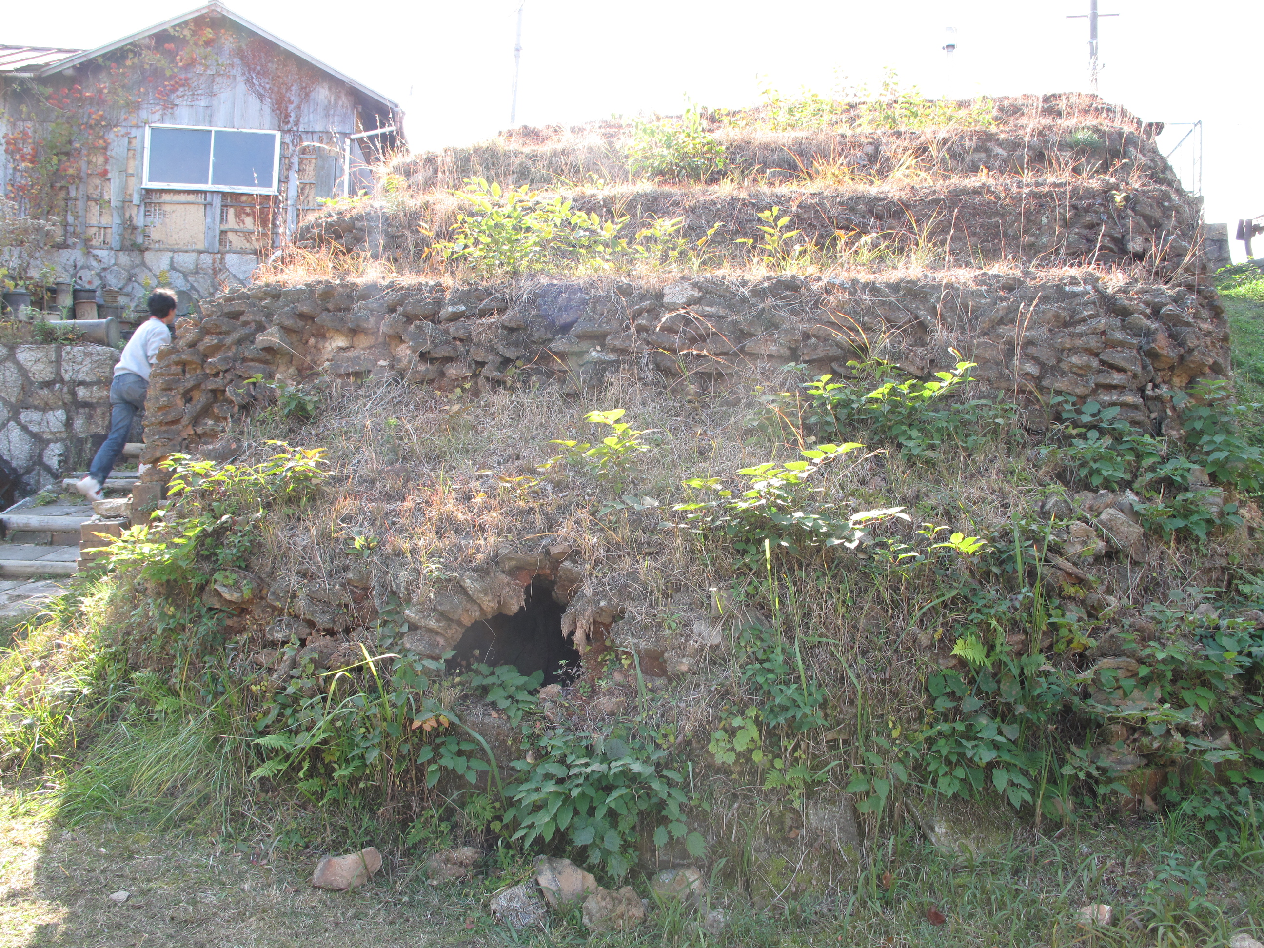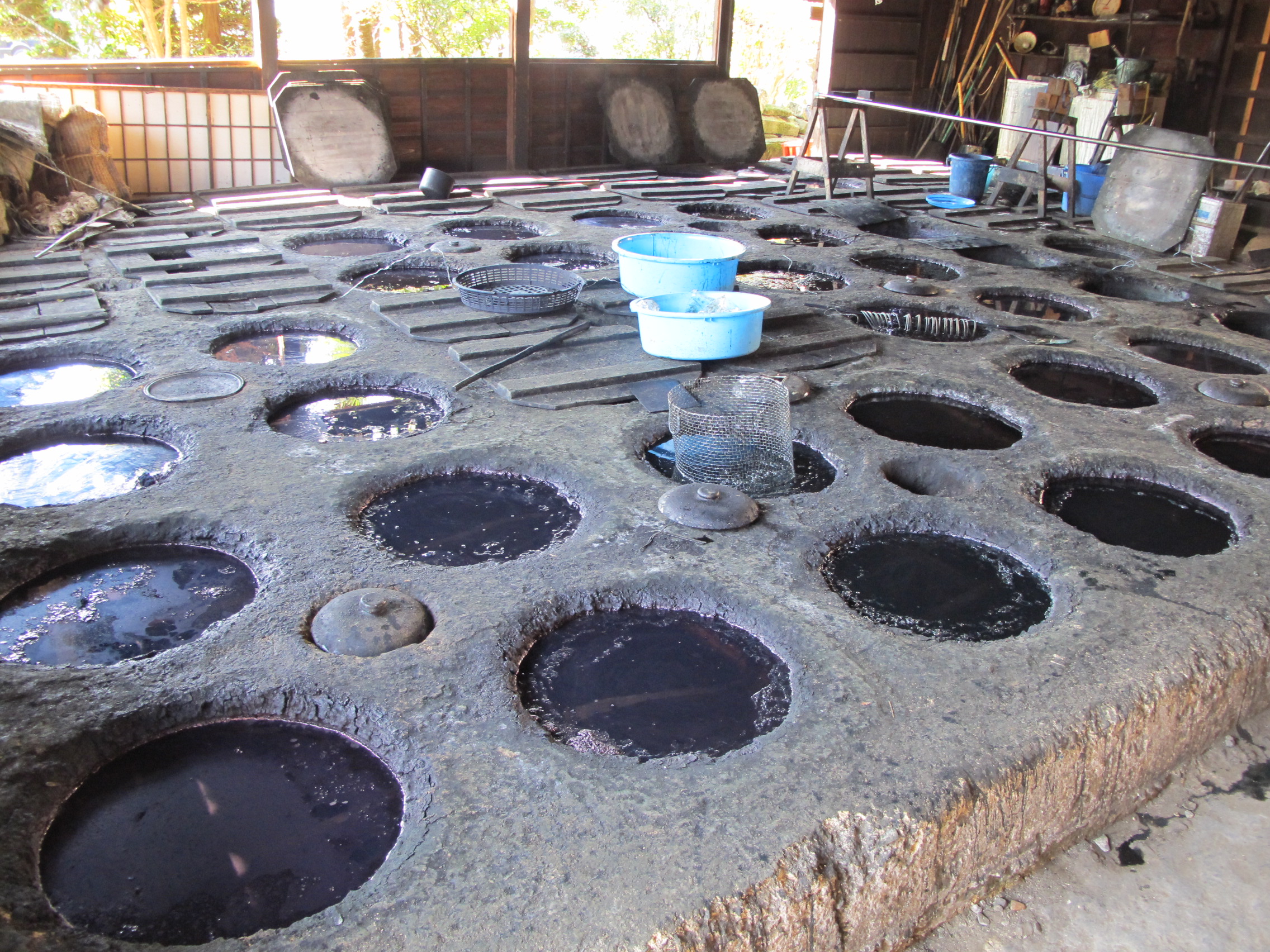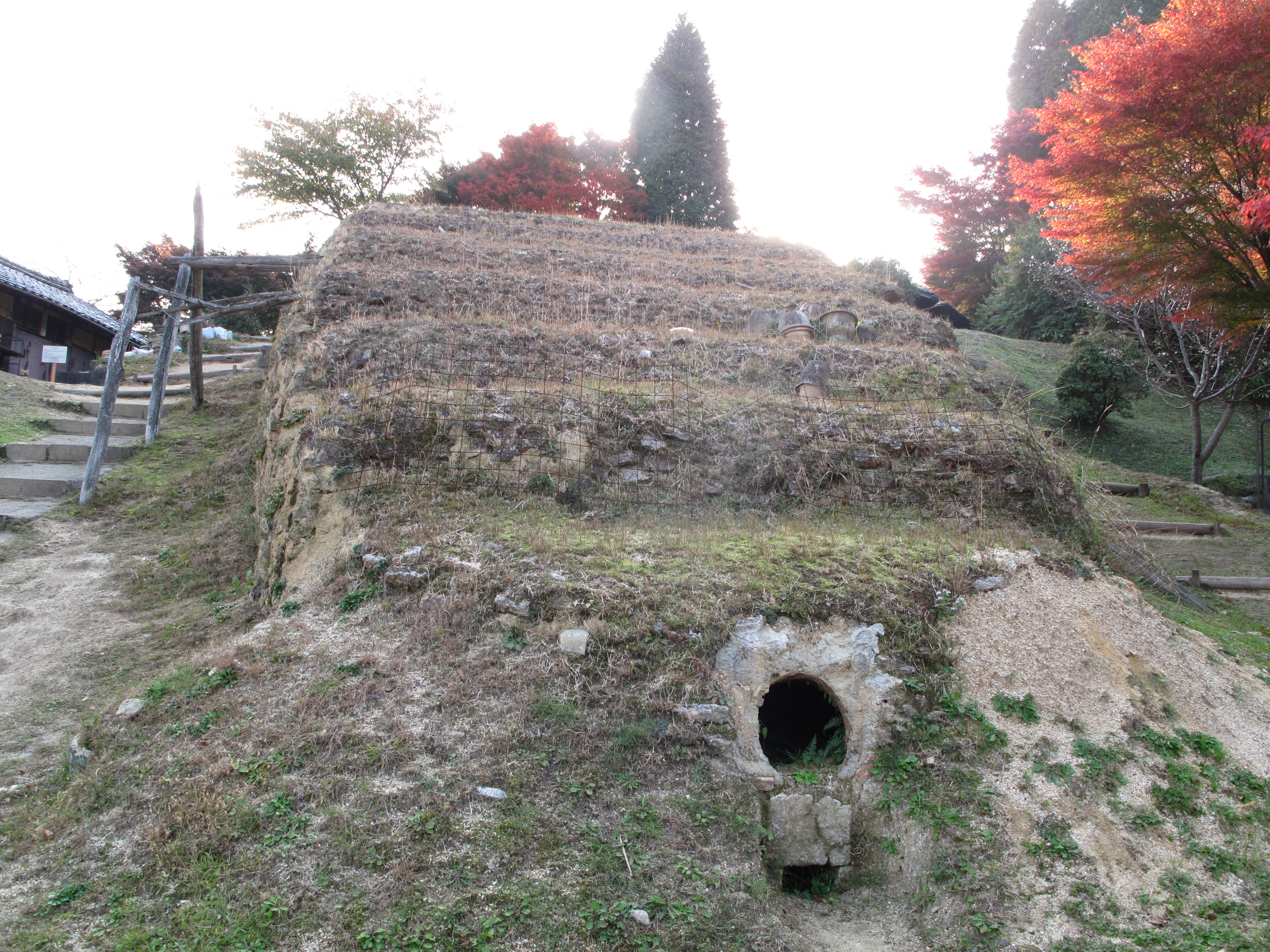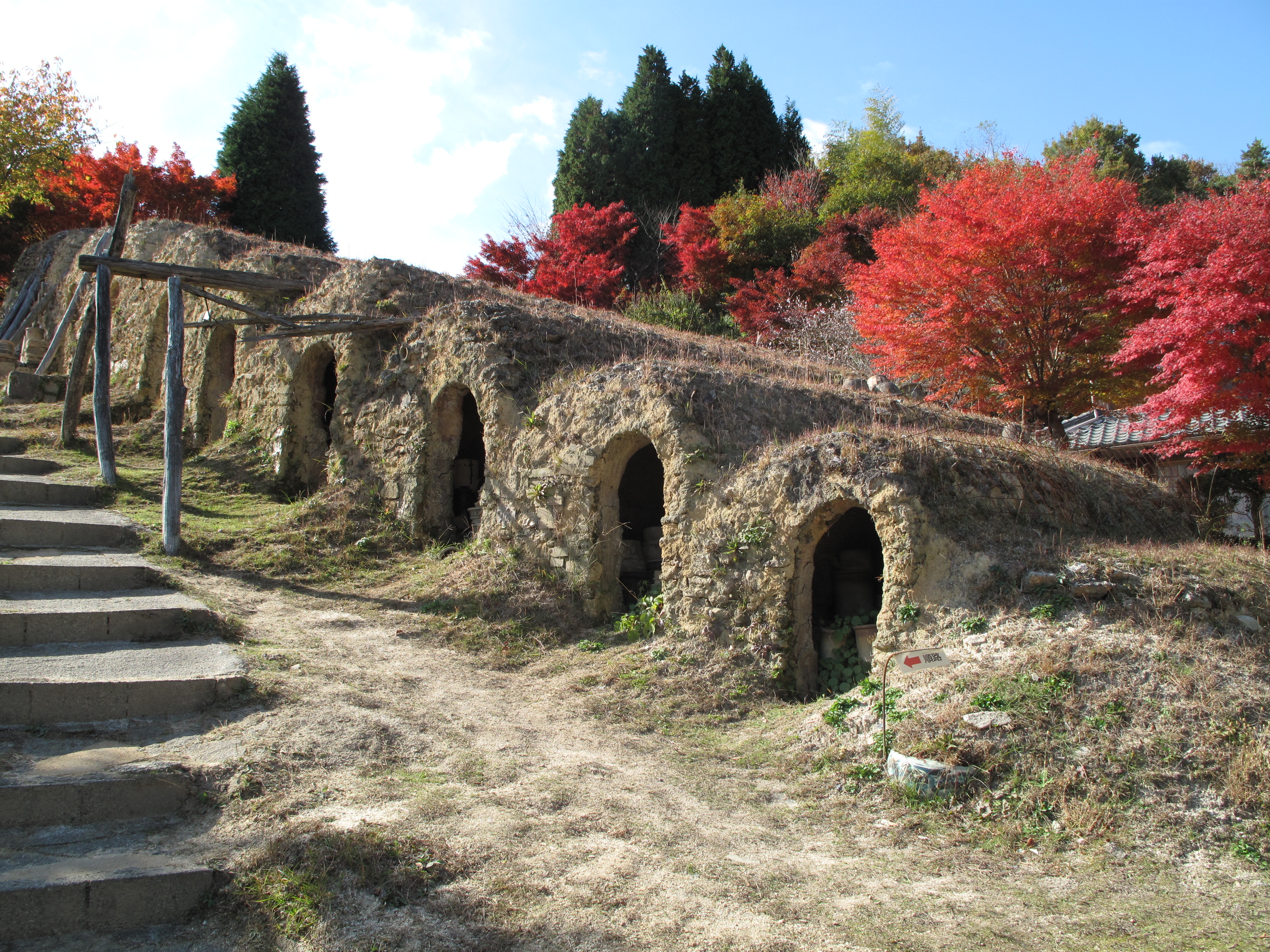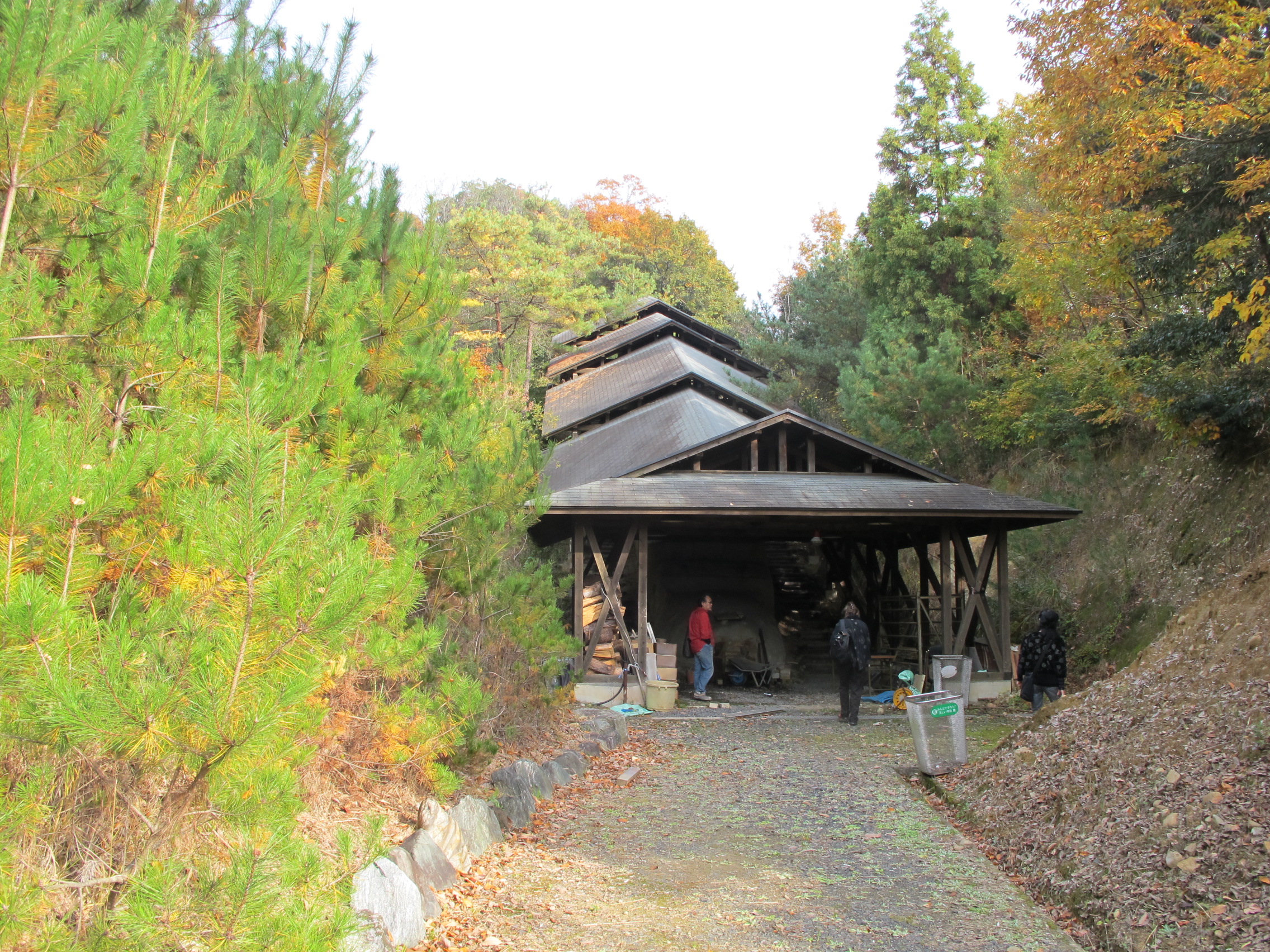 Wood fired for one month to steam off the 10,000 items packed inside it, then wood fired for another 4to 6 weeks to get it up to temperature of 1090oC. Then a month to cool, before unpacking and repacking. Only 4 firings per year, but they have 4 kilns.