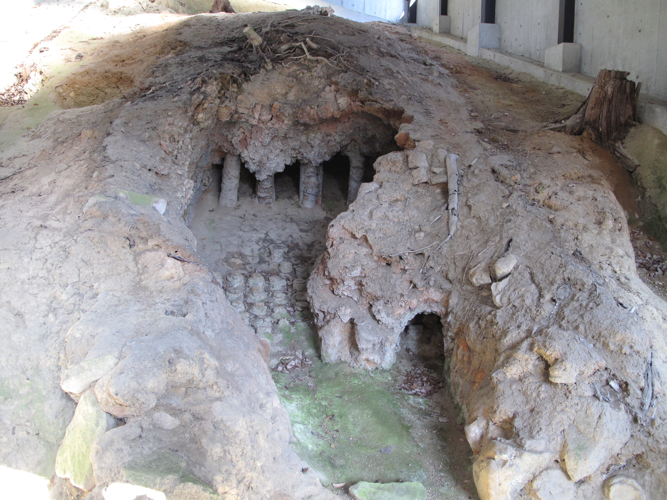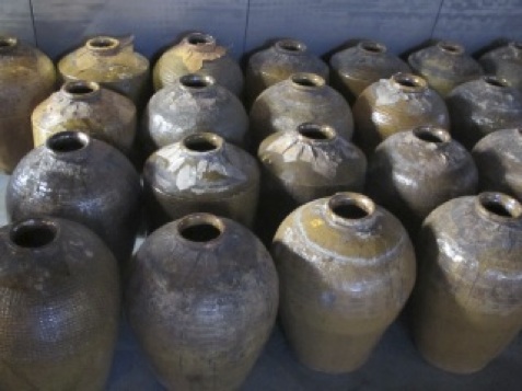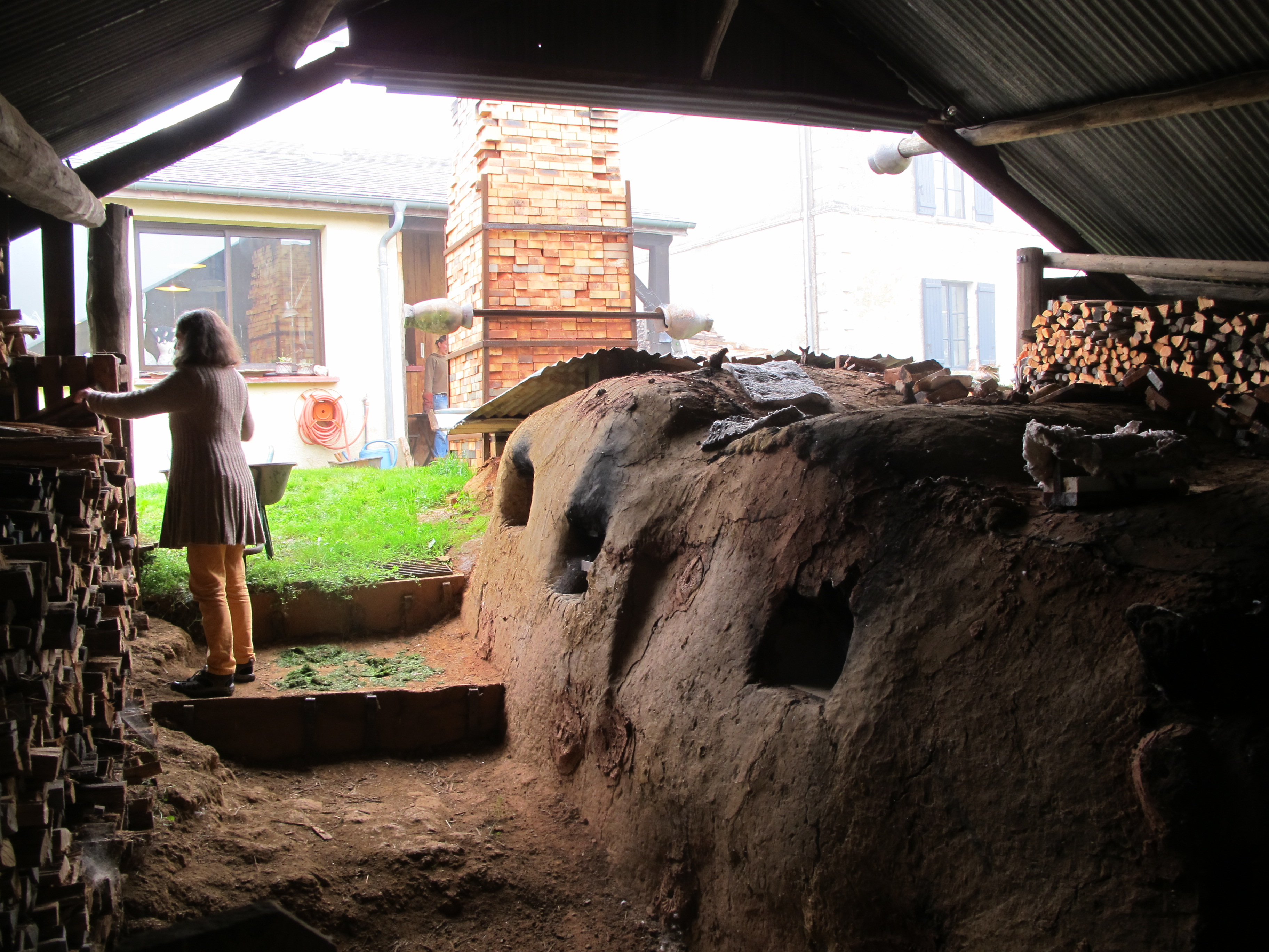 There is no glass. We make a lot of friends and promise that we will keep in touch by email. The next one will be in Japan. I’d be keen to go to that one. We’ll see. I can always post my bowls over. I had to do just that this time, as the show was at the end of our working-holiday trip. I’m offered a workshop in France next year to teach rock glazing. Maybe? We get to visit a small local brick and tile works. It’s very old and has that feeling of belonging where it is. I love it. So much so, that I even buy the ‘T’ shirt. It has a lovely old rambling structure that tells its own long convoluted story. I can’t read it all, but I get the flavour, and I like it a lot.
