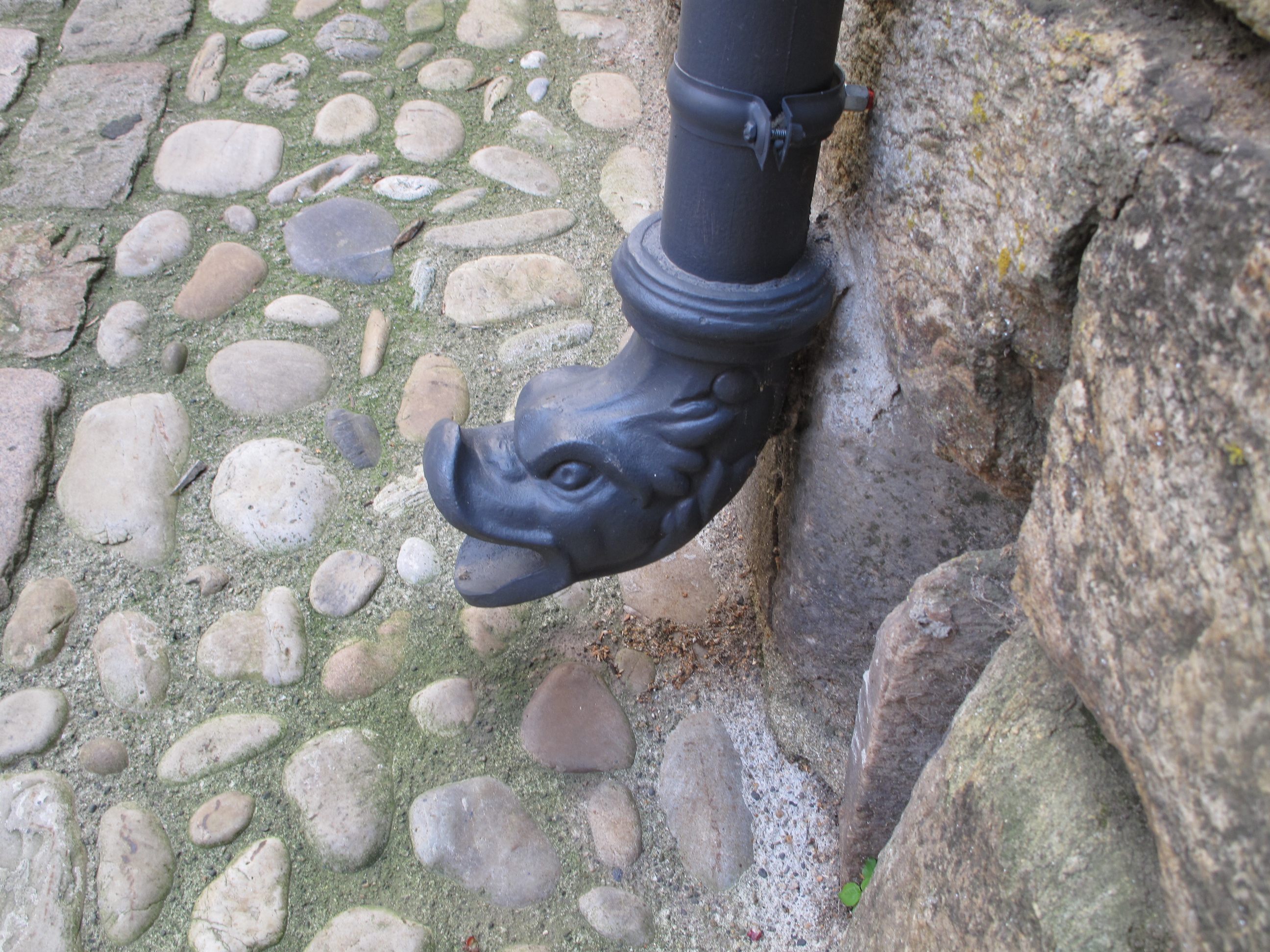 The flood levels over time tell the story. We spend the day walking in the town and end with a dinner in the main square. It’s all very nice. We have to pinch ourselves to make sure that it is all real. Everyone here today eats very early and by 8pm everyone has gone and we are left almost alone to finish our bottle of wine and chat. Just a few people clattering by on the cobbles in the dusk. The lights come on in the fountain that has been serenading us all evening, tinkling and splashing in the back ground. It has a commemorative plaque on it say something about the special centenary of 1803 to 1903!