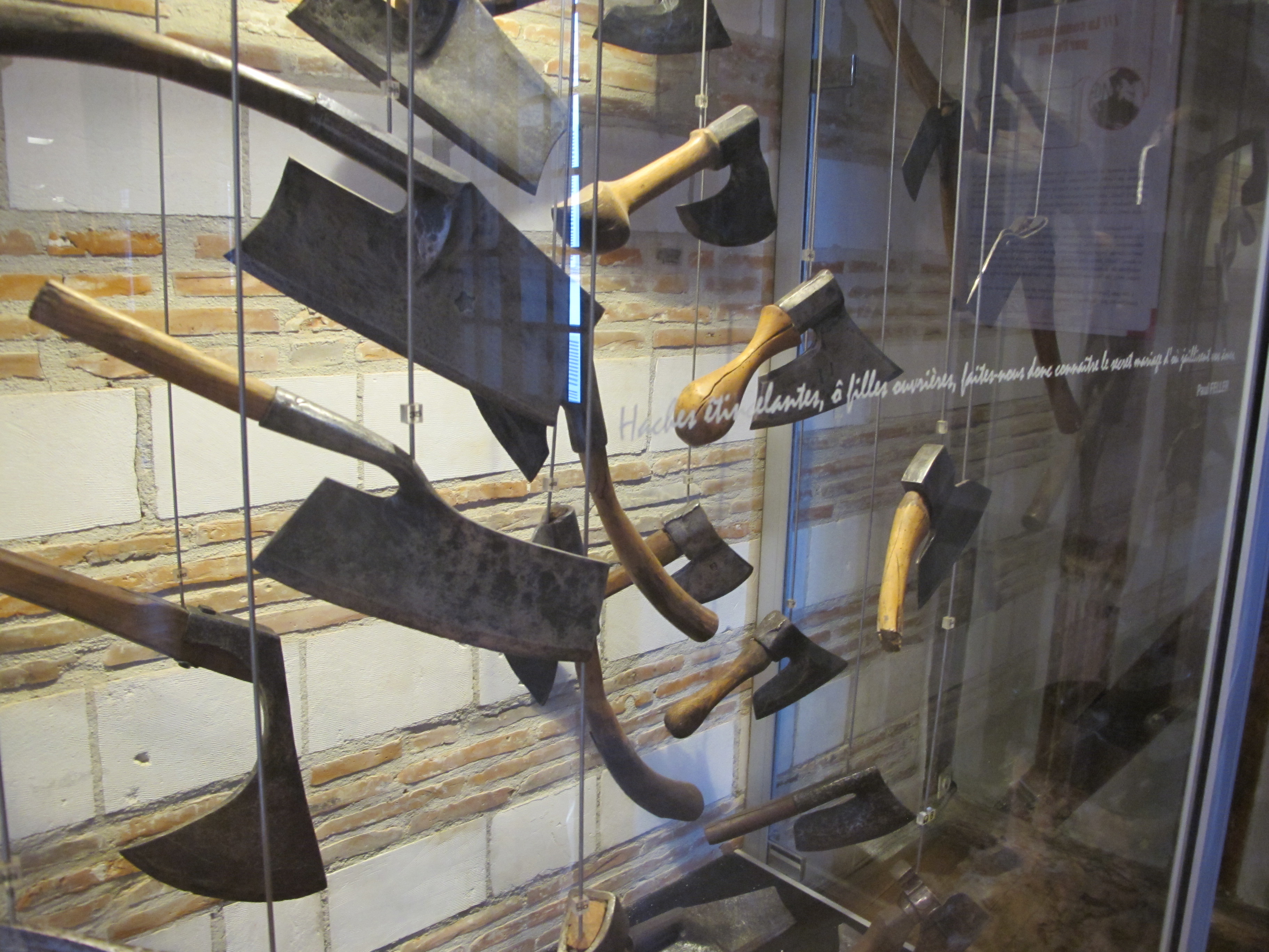 Yesterday we went to visit the pottery village of ‘La Chapelle de pots’, (The little church of pottery). This is the village where Bernard Pallisy learnt his trade. The small museum next to the Mairie, tells us that pots have been made here since the 13th centuary. We get to see a few examples, but there is nothing special happening here now. The village is very pretty, all built of blond limestone with pale painted shutters. We unfortunately stop to visit a local pottery workshop, but it is all slip cast with very tacky applied transfers on a tin white glaze.