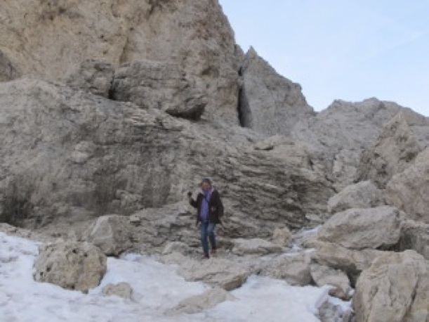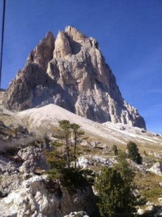 Riding the gondolas up to Refugio Toni Demetz. We get to the top via the North Face – The Hard Pay. We pay for the gondola ride to the top. It’s so much easier than climbing. When we get there, there are two men who climb up the craggy face and arrive all flushed and sweaty. Crash helmets, huge bundles of looped rope, and heaps of jangling hardware. They stride into the refugio, and sit and talk, They have earned their lunch up here. We are just tourists. Just like the King tide of tourist flotsam that drifts along the canals in Venice every day. We are the problem. We are the ones clogging the place up. It would be so much nicer without us! I can’t help but feel a little guilty at having all this energy expended on me. I don’t want to be the problem, but I am. I can’t help but think of how the hell they got all this building up here and the gondola cables etc. etc. It was all carried up here by men like these, on their backs. I want to take their picture, but don’t want to appear rude and intrusive. So I don’t.