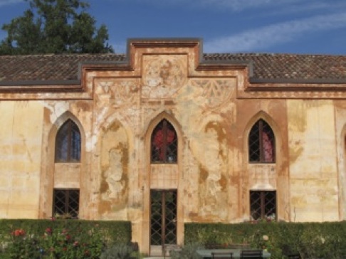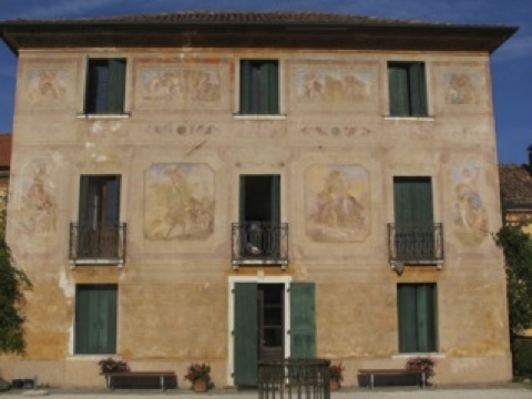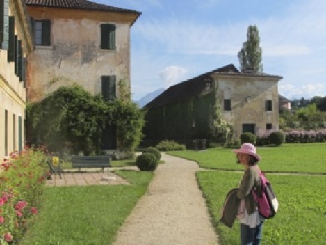 I get the feeling that I’m being watched, and turn around to see the store detective standing right behind my shoulder looking at me with a “What the fuck are you doing” look on her face, her shoulders raised up and arms out-stretched, bent at the elbows and palms upwards. Her face contorted. She’s saying something to me that I can’t understend, but I know what she means alright, I show her the photos on my phone, but she’s not impressed, so I beat a hasty retreat out of the shop. Hildegard comes out looking fantastic in her new Euro-clobber, so I have to go back in to pay using the plastic card. The gumshoe keeps a very close distance and beady eye on me till I leave. We drive the long and winding road through the Dolomites, which is really nice. All the architecture is very “mountain Style”. We could be in Switzerland, or Northern Italy. All these high villages in the mountains look very similar. Its stunningly beautiful. It’s a great day in the mountains. When we get to the border, we think that we may need to buy a highway pass to use the road system in Italy, just as we do in Switzerland and Austria, but we don’t seem to need one today, as there is no one there at the Italian border post. The Austrians wave us through, but only after having checked our windscreen for the essential, glittering, prepaid highway windscreen ‘vignette’ and we drive straight through. Thee is no-one there on the Italian side. Presumably he’s having a snooze after lunch, or the government hasn’t paid him this month so he’s not turning up for work! Who knows? No-one in Italy it seems, either knows or cares. Maybe he’s off doing a job for a mate. Double dipping? Welcome to Italy! Tragedy strikes! As soon as we cross the border, the GPS switches to blank screen. There is no map for Italy! Of course Italy has maps, but this hire car company has only bought the cheapest version to go in this cheap car. We have a Renault Clio. We ordered something smaller and cheaper, but when we turned up to collect, they didn’t have the smallest size of 2 door VW that we paid for. Instead we get this slightly larger 4 door car. No problem, they don’t expect us to pay any extra for it. It does however have a built in GPS. When we ordered the car, they wanted 10 Euros per day for a GPS as an extra! We declined, as we already have a TomTom that we have used for the past 5 European trips and it has always worked well. As it is getting old and the battery has no more reserve power, it only works while plugged into the power supply and the maps are now somewhat out of date, when it comes to new road works. I decided in my wisdom to buy a new one on the internet before we left. I went online and bought the newer version of what we already have, with world maps, so that I wouldn’t have to learn any new software. It worked OK in Australia the week before we left when we tested it out and the battery lasts a couple of hours when going walking with it. Now we need it. I extract it from my bag and install it and off we go again. As we are negotiating the chaos that is the Italian road system. The TomTom freezes and won’t respond any more. Bella Nina reboots it and we try again. It has frozen, locking us out of the options panel. We can only go where it is previously programmed to go. It can’t change its mind until we get there and it can re-think itself to a new location. It can only allow previous and current location. A complete fuck-up. Totally useless! Obviously there is a fault with the software or hard ware and this needs to be fixed, but it isn’t going to happen here and now today. Fortunately, the totally stitched-up, anally retentive and slightly aspy, Brian-a-like Steve has packed the old one as well! Without close adult supervision. Who in their right mind would travel with 3 GPS’s. Well, Me! I pull over, go to the boot, unpack my suitcase, retrieve the old TomTom that the Bella Nina doesn’t know that I have with me and we are off again. The old reliable, out of date and superseded item – Aspy Steve, saves the day. We’ll have to make a warranty claim on the new TomTom when we get home – Useless piece of junk! As for the GPS in the car. Who in their right mind would think of driving from Germany into Italy? A lot of people I would think!. To cap it off. Our rental agreement doesn’t allow us to drive in any former eastern block country. This is a pity , as we would have liked to spend a day in Cesky Krumlov, so as to Czech out that part of the republic, but as it is Verboten, we don’t. I do notice however that the GPS built into the car has maps for all of Eastern Europe, where we can’t go, but not Italy, where we can drive? EuropeCar, get your act together! We finally arrive at the Villa Buzzati in the late afternoon. It is really impressive and totally amazing. So ancient and lovely. In need of some TLC – which means, a small fortune, but gorgeous, complete with weathered frescos on the facades. Its own chapel with campanile, the whole complex is enormous!