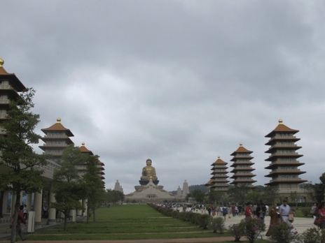 On day three we go for an excursion to the Buddhist shrine. It’s a non-prophet Buddhist shrine. Totally free. No entry fee. We are taken from our tour bus along with the other thousands of people from the multiple busses into the complex. It covers 120 hectares of valley that has been bull dozed and levelled, all paved in ‘natural’ concrete. Everything leads up to the big Budda. In Australia, we have the big Merino, the big prawn, the big potato. Here it’s the big budda. It’s 140 metres high and gold plated, non-acquisitively! This site goes way back to 1995, when it was conceived by a very entrepreneurial monk. Whose name now is spoken in hushed whispers. We enter through the reception hall, past the MacDonnalds, Starbucks, and various other fast-substance outlets. Actually the chocolate shop wasn’t that bad. 70% dark chocolate, quite nice! Then there was the icecream outlet, not too bad either. Everyone offers free tastings as we pass. I’m so impressed by the 120 hectares of concrete that I’m overwhelmed. Janine is very impressed by the ‘non acquisitive’ — make your life simple — iPhone covers. Blessed by the head monk and featuring his image. Don’t let expectation ruin your life, buy everything now! Don’t expect it, just buy it and own it – NOW! All major credit cards accepted! You can even have your wedding here — for a price!