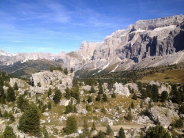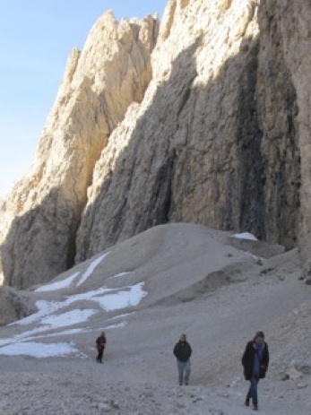The next morning, the Bella Nina and I are up early to pick some grapes from the vines outside the kitchen window of the Villa, as they are completely ripe, sweet and juicy. Why aren’t the birds eating them like they do in Australia? Possibly because the hunters have shot them all, and there aren’t any left? We pick a couple of baskets full and make a grape jelly for the family, just as we would do in Balmoral Village at this time of year. The Matriarch, tells us that in the good old days, there were people here whose job it was to do such things. She is in her 80’s , as is her husband. and this is only their summer house, they life the other half of the year in Milan. I’d like to see that house too! There are no contadini now and nothing is being kept as it was. Everything is in decay. The jelly turns out very well and we have it for dinner the next night, with all the family at the formal dining table. The matriarch is at first dismissive. Australians? What would they know about fine food, or the life of the contadini?. However, she agrees to taste some. it is a rich black/red and full of summer/autumn flavour. We are proud of it. Her face lights up with the tasting. She has good sized helping. Something unusual for her in her dotage, when nothing tastes properly anymore. She asks for a second helping and then finally a third. It’s a great hit. Apparently it’s just as she remembers the grape jelly from her childhood, that was made from those same vines. She says that we must make some more, and that she will watch how it is made this time. It has brought her alive, and she is suddenly taking an interest in things again. This is apparently something that has been fading in the last few years since she has been confined to a wheel chair. We are flavour of the month now, maybe the pottery and kiln will get the local go-ahead? Amazing what those Australian contadini could do. Almost like real Italian peasants! It’s nothing but pure grape juice and some gelatine, heated and set. Nothing could be easier. The next day I get up a six and go to collect quinces from the trees in the orto and I make a slow cooked quince puree for tonights desert before breakfast. As the others come down into the kitchen for the morning coffee, they see me at the stove – stirring. It’s luscious, soft, tangy and pink. So full of mouth watering flavour, another simple desert from the garden. We go walking into the Dolomites for a day. Driving into the foot hills and then up, up and up. We lunch at the refugeio ‘Tony demetz’. at 2685 m.
