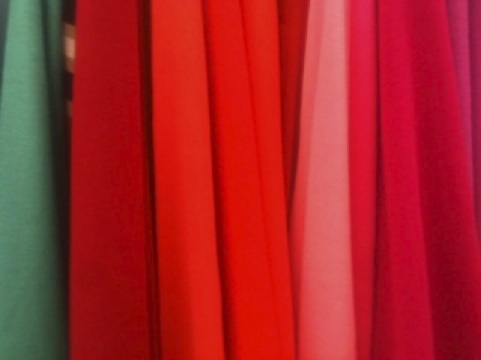 We eventually leave Wien, having had our fill of schnitzel and all things fine and gold plated. We are heading for Venice and the Villa Buzzati. Its a very long drive, so we decide to stay overnight in the tiny village of Feldkirch along the way – the church in the field. It’s lovely, that’s why we decided to stay here, but also because we want to take the very long and winding road along and through the Dolomites to get to Venice. It’s not the quickest way, it’s the very longest way. This will take us a full day in itself, so better to stop now. We want to drive through there to see it all in daylight, also, I need a break from driving on the right it takes a lot of effort and concentration. There is nothing much happening in this tiny place, and we like it that way, but it has a great little restaurant serving local dishes that are both Austrian and Italian at the same time, as is the language here. The locals are very patriotic to the Tyrol and the dolomite area on both sides of the border. They still don’t respect the outcome of the 2nd world War and the carving up of cultural areas to suit political ends. They consider themselves separate. We are in Austria, but we say gratzia at the end of our meal and the waitress answers Prego. It’s an interesting area. Something that does surprise us is that there is a poster up on the wall announcing that Eric Burden’s ‘The Animals’ and ‘The Troggs’ will play here tomorrow night! If we were going to be here we would go and see them. These guys must be in their 70’s or 80’s by now, but still touring tiny towns in Europe. In the morning we stroll up and back down the one main street. Herself sees some tangerine pants and an electric blue woollen top that she likes. They are very cheap at 10Euros, on sale, so she tries them on. While she is in the fitting room I wander around the shop looking at all the piles of colourful clothing and start to take a few pictures on my phone. The colours look great together.