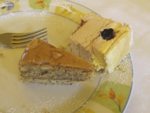 It’s a good walk and my hip takes it OK, as long as I go slow. The church is Gothic and quite ornate. We dine in a very small cafe/restaurant at the top of the hill with a balcony looking out over the town. Very pretty. The service is tediously slow, taking 3 hours to deliver 2 courses. It’s not that big. I wonder why it is so slow?