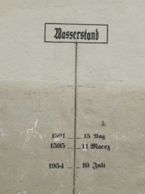 It’s a lovely little town in South West Bavaria. Pretty little cobbled lanes and old buildings all around. Quite picturesque. It has a glass museum that the Frauline is keen to visit. She has googled us here and found us the last room in a very quaint hotel dating from the 1600’s, and only 68 Euros, right at the water front and in the middle of the town. The iPad has changed the way we travel. It’s made everything quicker and easier, mapping is no longer a problem and insights gained into the state of the local pension scene are all garnered on the way in the car. She sweet-talks the man in the tourist office to ring and book our room for us as the hotel doesn’t speak English well. It’s the hotel that isn’t responding to our emails. She’s so multitasking. It’s all done by the time I’ve found a car parking space that is legal. As it turns out the place I find is smack bang in front of the tourist office and next to the hotel we find ourselves in. So no need to move the vehicle till we leave here tomorrow. Free parking on Sundays and 4 euros will see us clear through till 1 pm on Monday when we plan to leave for Vienna. There were terrible floods here a few months ago, about 5 metres above the street level. All the homes and businesses along the river frontage are ruined and are only now being repaired. All the shops and floor and first level apartments along the road have their doors and windows wide open to help dry them out a bit. There is a pervading smell of mould coming out of them. They are all being stripped out and rebuilt or re-lined and plastered. The tradesman start work here now at 5 am! and work until dark. The whole lower level of the town needs to be rebuilt.