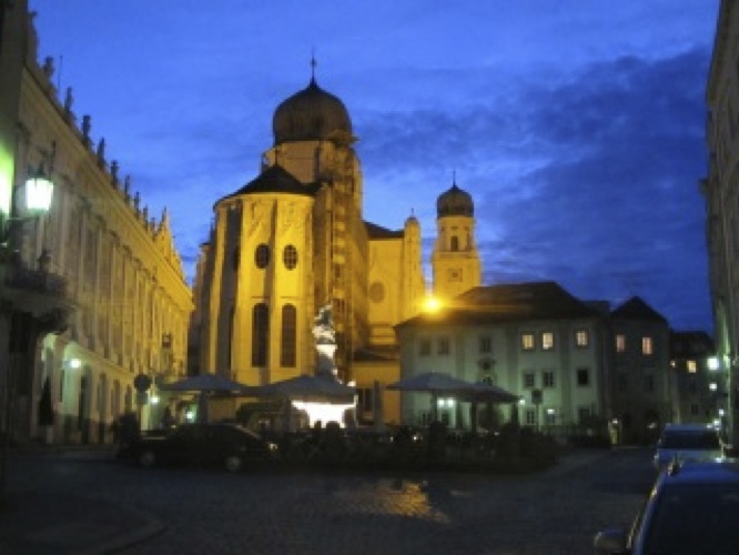 We go to the glass Museum. Apparently it has 30,000 pieces of glass in there and I can believe it, having spent a good deal of my life in there! It goes on and on forever. I didn’t know that there were that many pieces of Bohemian glass in existence, never mind in one place. It seemed a bargain at Euro 5 entry. But when you consider that you might die in there without having seen it all. It may be a bargain made for you by Faust. The first few floors are kind of interesting, by the next I was stumbling. My eyes glazed over. At the 9th, the paramedics on duty saw me stagger and fall, they recognised the symptoms straight away. I was given an adrenaline injection and taken to the Bohemian glass remission room for a fast relief treatment. There were other husbands in there with me all talking football and not missed by their wives yet — or at all. The attending triage nurse gave me a tip. Skip the sections – Mannerist to Modern and reappear in the Art Nouveau section, she’ll never realise that you were gone. It’s only 2 floors from the end. I’ll show you the ‘IKEA’ hidden short-cut tunnel. I live to tell all. Hilldegarde suspects nothing and is enervated by the detail and (tedious) repetition with only minor variations. I always thought that to be Bohemian was like being really cool, but now I know better. I should have suspected something when she bought a new 2 and her terabyte memory card for her camera, just before going in. Of course it’s not all Bohemian, some of it is from Silesia. We drove through Silesia to get here. There were baby sheep grazing in the fields. Quite a bucolic, rural idyll. But now I know that it was the silesia of the lambs! Beware. We leave Passau and wind up the hill out of the narrow river valley up onto the high ground to find that there is another modern Passau, where everybody lives and shops. It’s all modern steel and glass shopping malls and rows of suburban houses. I think that it this new Passau should be called Passé, and not Passau.