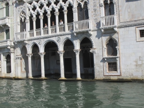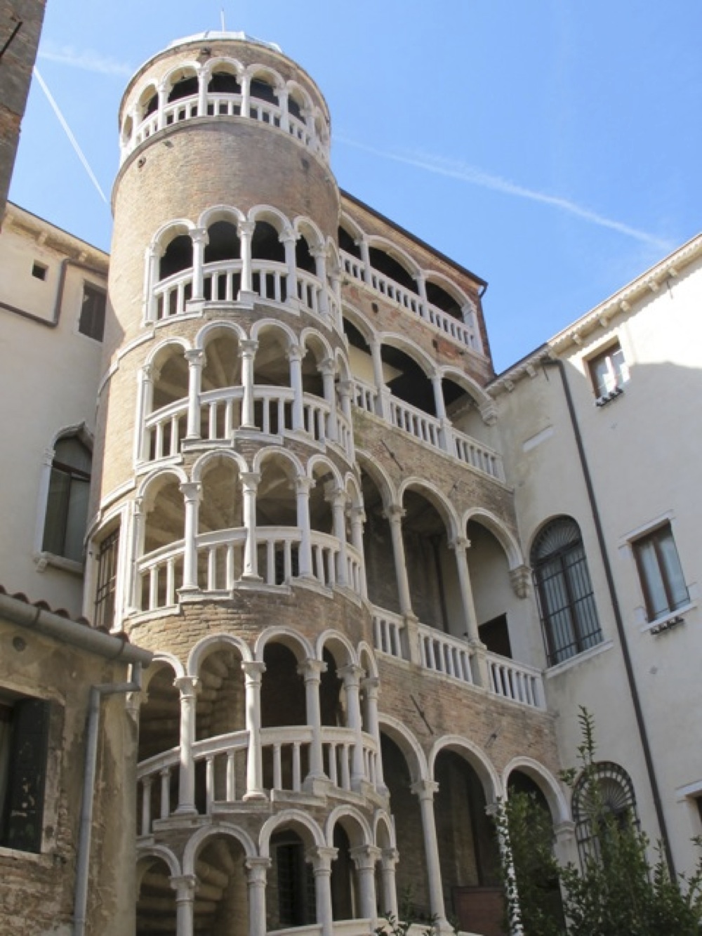 The main residents are the transient migrating hoards of tourists, like us, who swirl in and out like the tide. We walk past an amazing old building with an external circular staircase. The space around it is so cramped, that I can’t get it all in one photo with my small handy camera. It’s beautiful, but run down and needs repairs – like all of Venice really. Run down and slowly sinking and rotting.